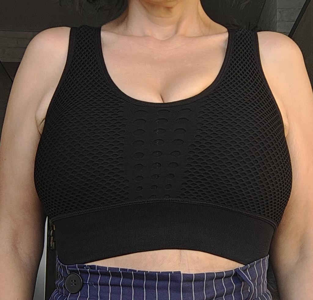 Very comfortable top, showed itself perfectly during training, the size is correct. Nothing presses, does not restrict movement