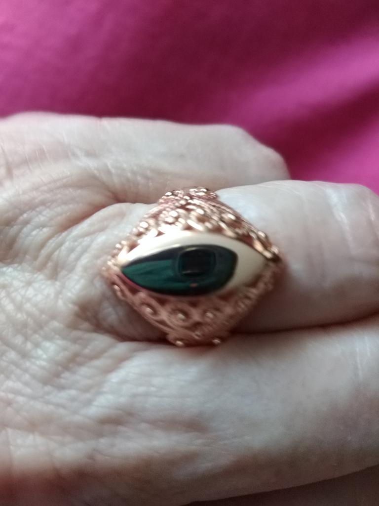 The ring is beautiful, but quite massive, although this does not spoil it. It looks good on the hand. For costume jewelry it is very good, you can even think that it is gold.