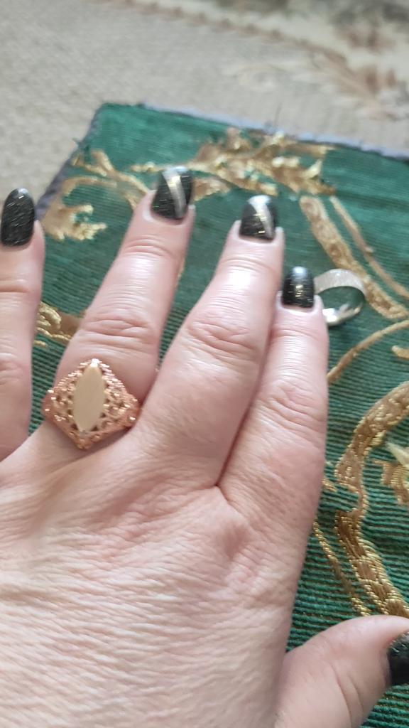 Beautiful ring, fits well, no one would understand it in place with gold ones, I like it, thank you.