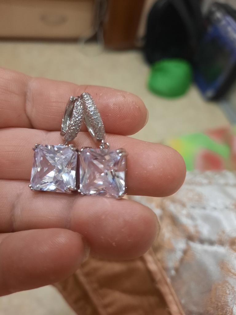 CMM Gorgeous Silver Color Princess Cut Cubic Zirconia Drop Earrings Party Jewelry