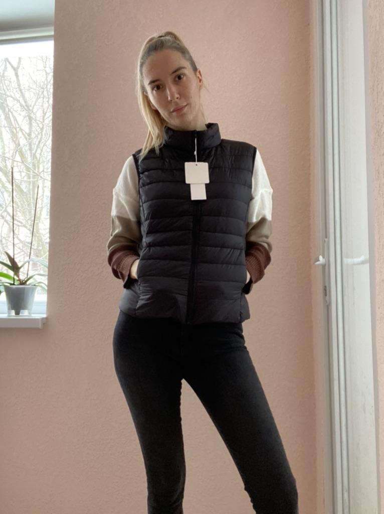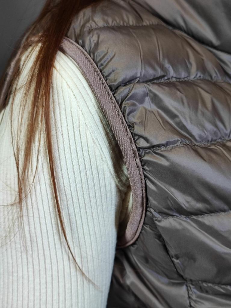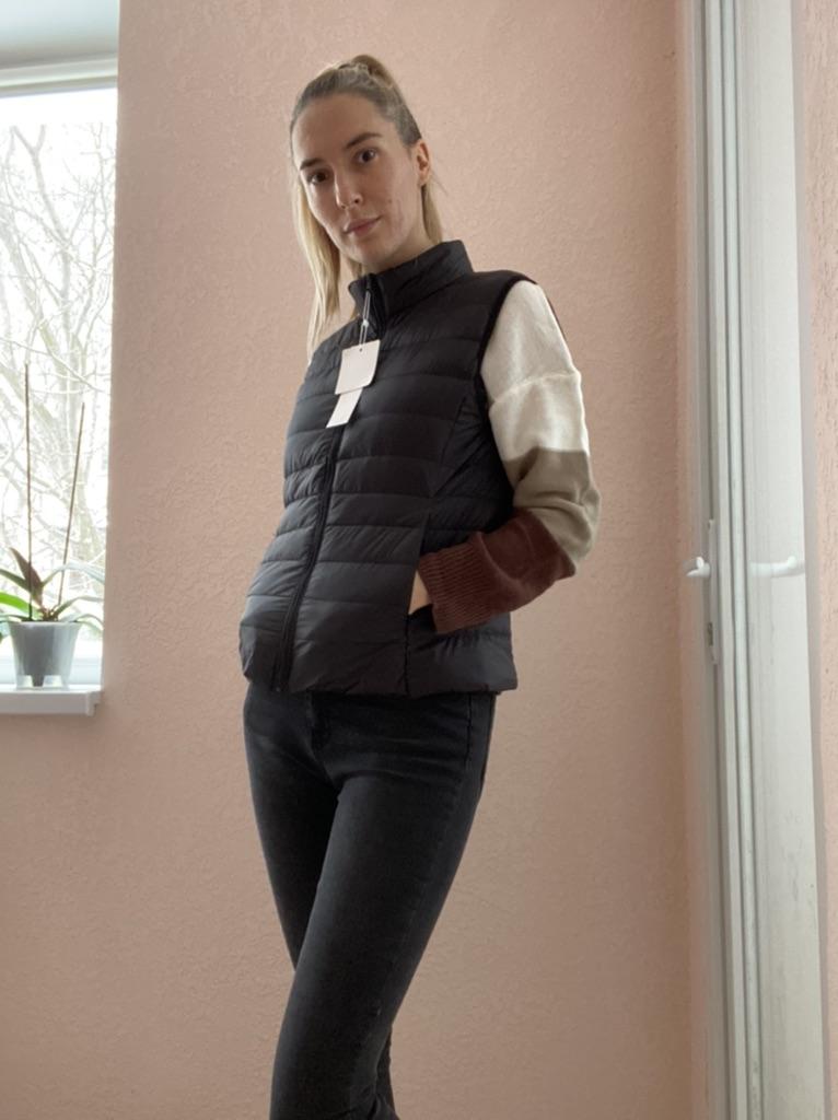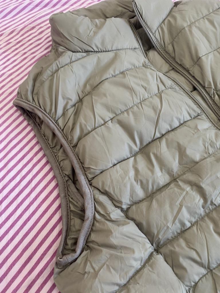 Absolutely gorgeous sleevless jacket.Very light but quite warm,has zip at the front and 2 deep zip pockets.Perfect for autumn evenings when you don't want to wear much but still want to be warm.Ordered 3xl and it fits perfectly on 103/85cm.Quuck delivery.Happy Shopping!