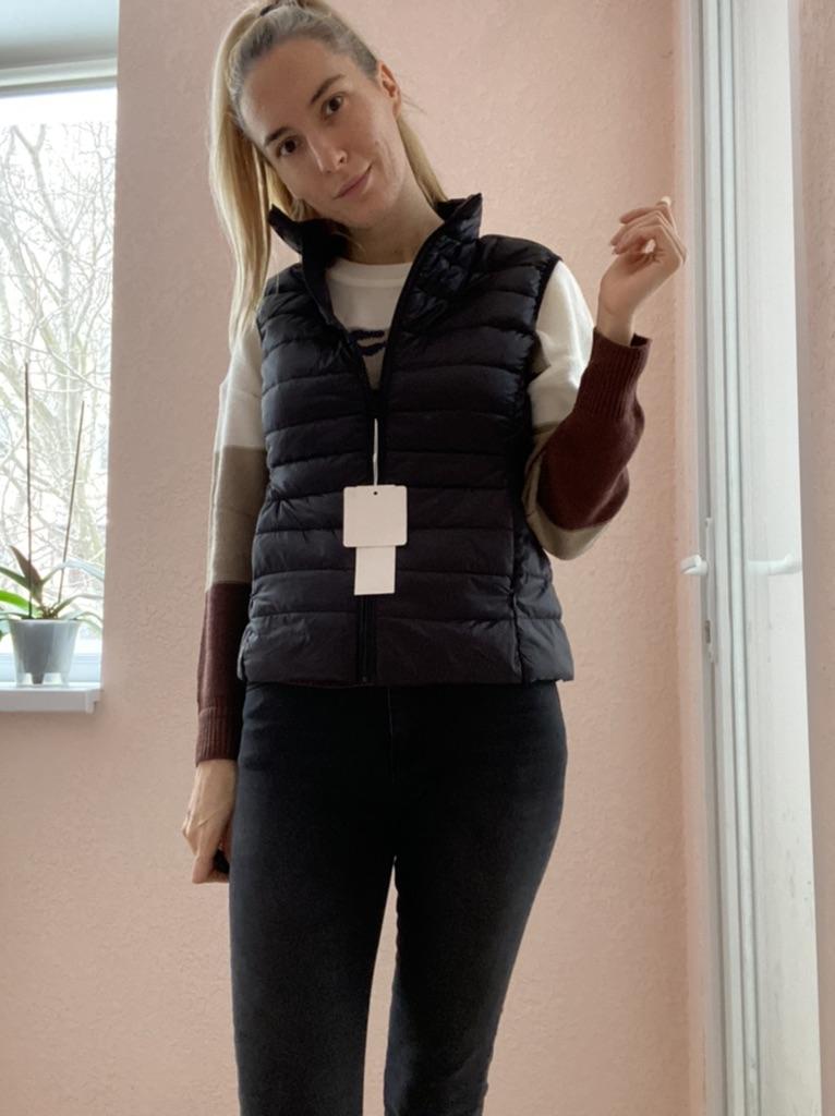 The vest meets all the stated parameters. The fittings are working, light, warm and pleasant. The vest fits true to size, only close to the hips. My parameters: 102-80-104. You can wear a vest and not fasten it. I recommend.