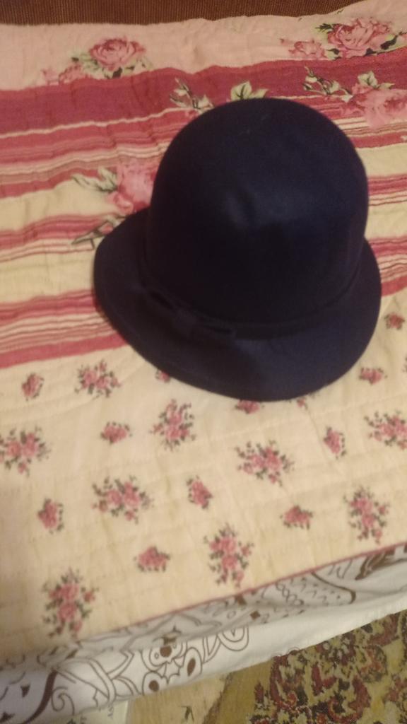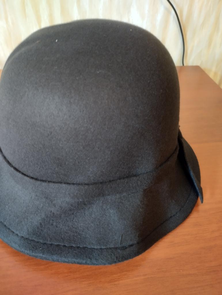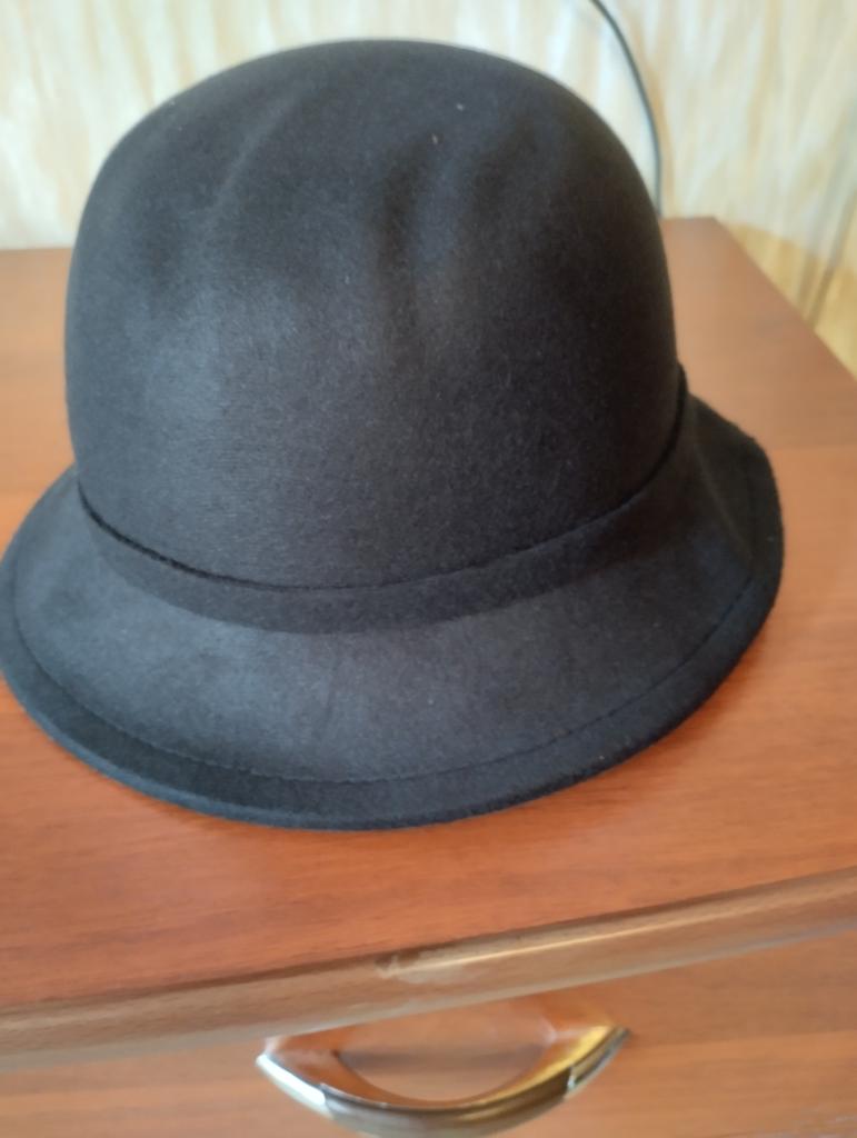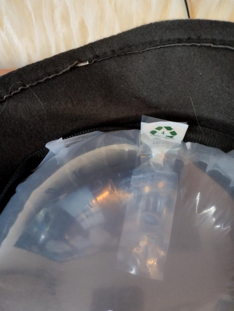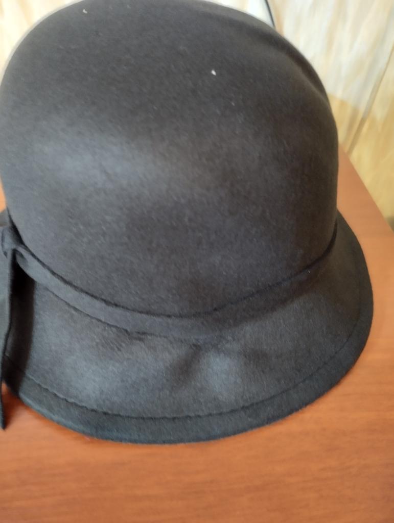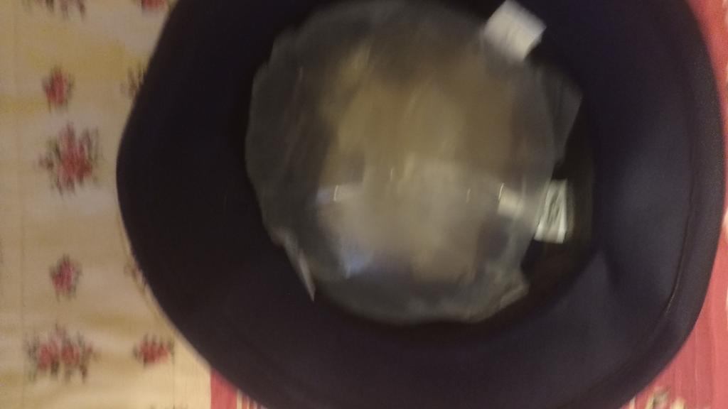 The hat fits size 56, has a slight crease, hard.