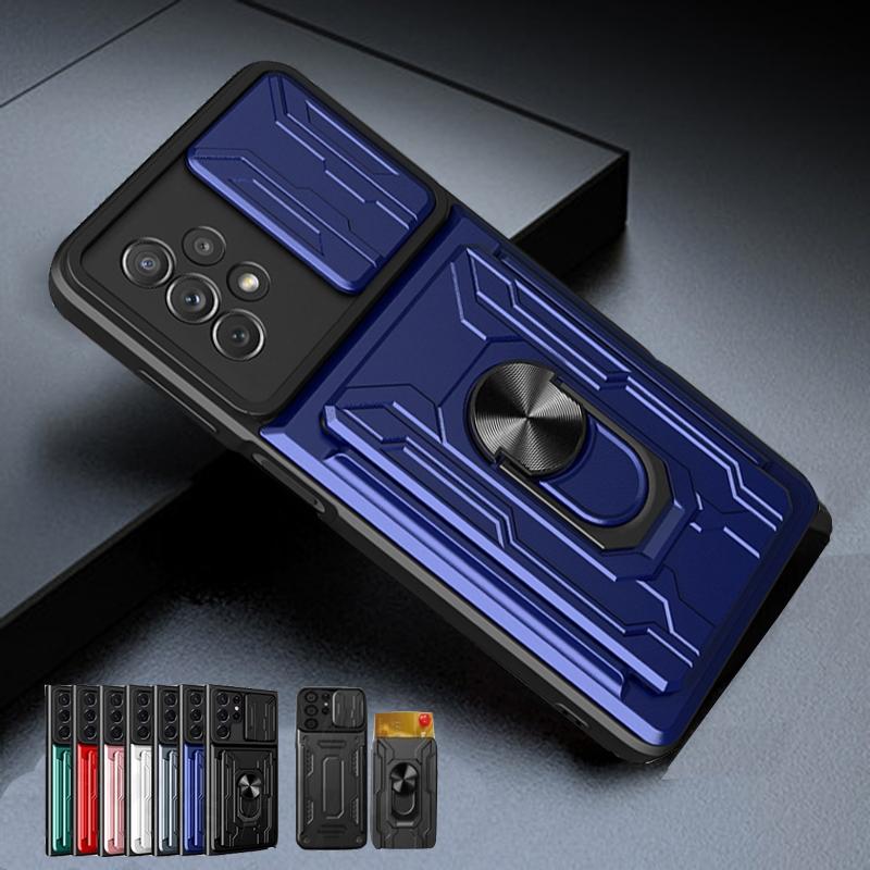 Slide Camera Lens Card Holder Case For Samsung Galaxy S22 Ultra S21 Plus A53 A73 A33 A13 A32 A12 A51 M32 4G 5G Military Grade Detachable Armor Cover