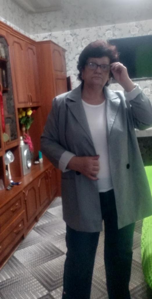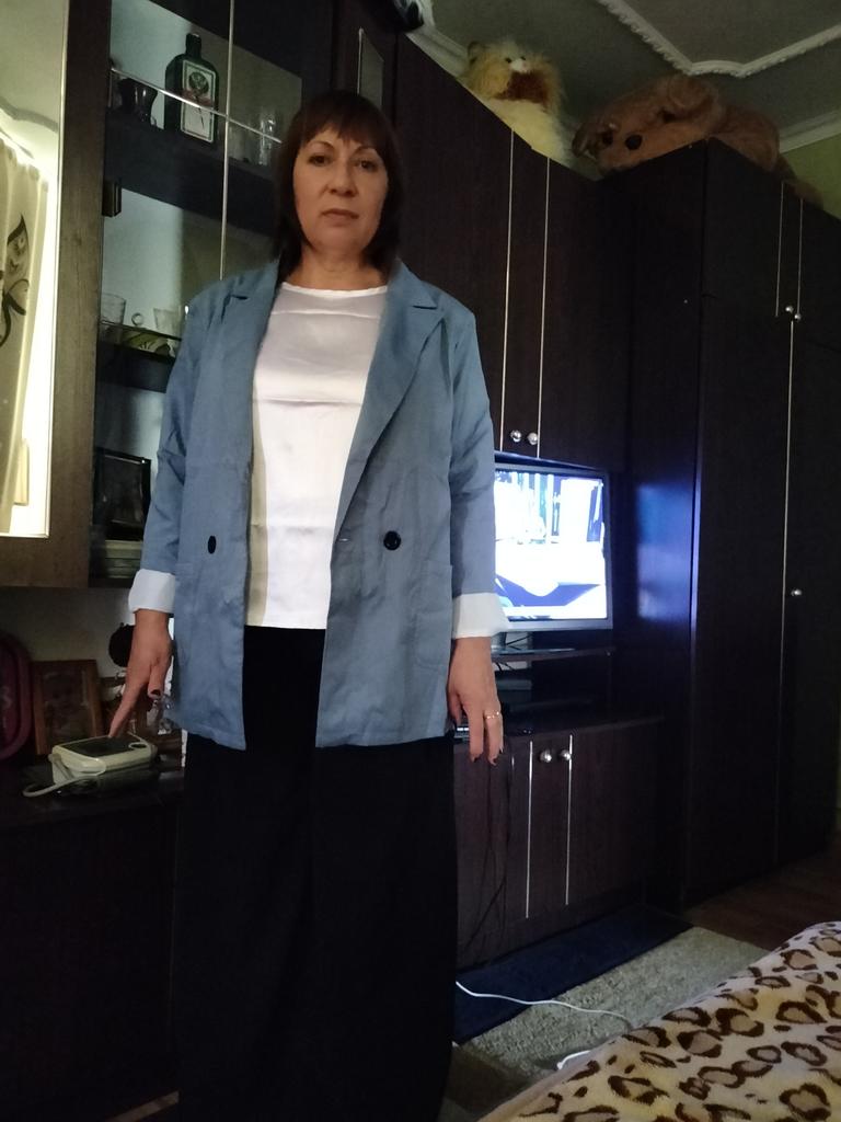 Summer light office jacket, nice if ironed, but the buttons are not sewn evenly and one is missing from the inside, but 2 loops. The color in the photo is brighter than in real life. Thank you!