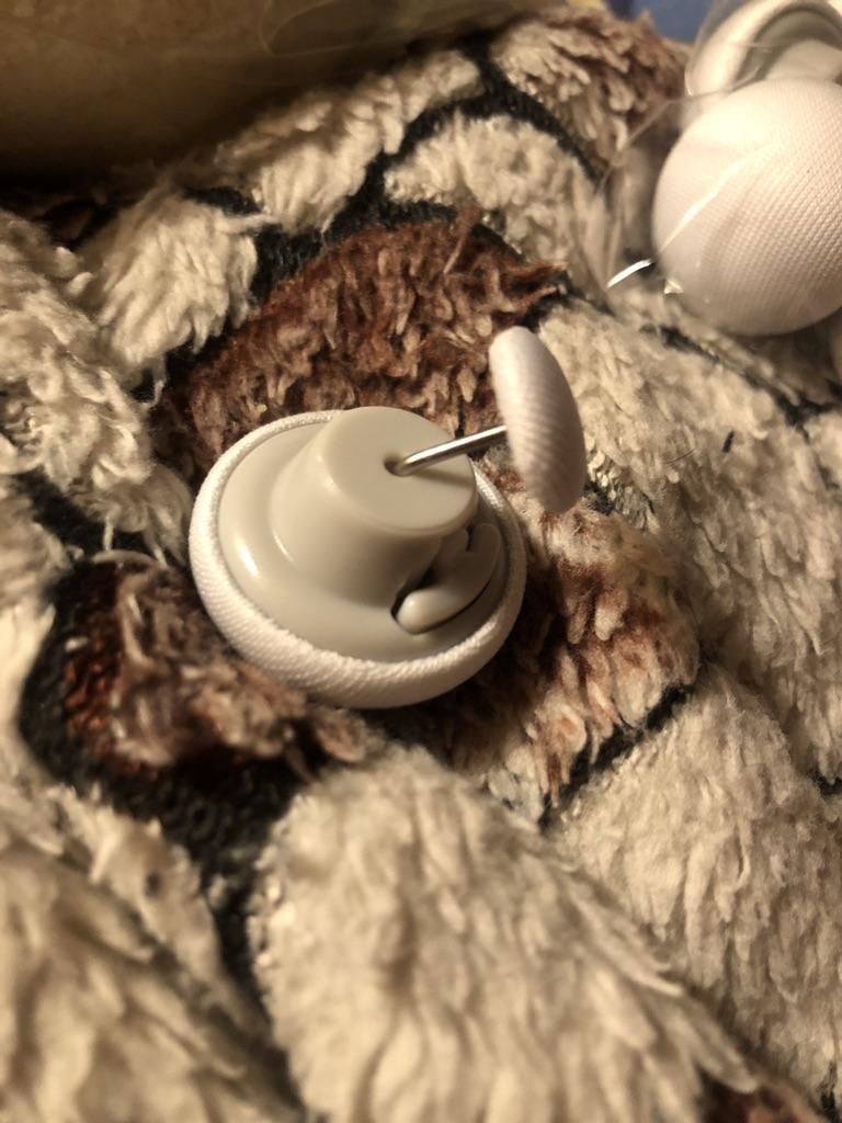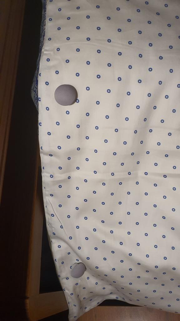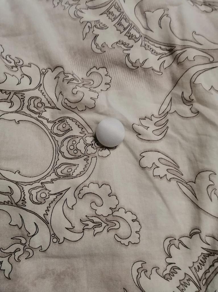 Good buttons, not small. The blanket + linen is pierced with a pin and secured in the cap. To separate them, you need to press a special button with your finger. For a (thick?) blanket.
