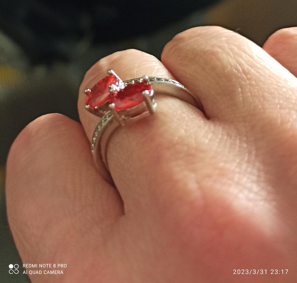 SODROV Garnet Red Color Crystal Double Zircon Ring