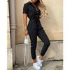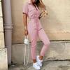 Summer Women's Trousers Casual Lapel Button Print Belt Cargo Jumpsuit