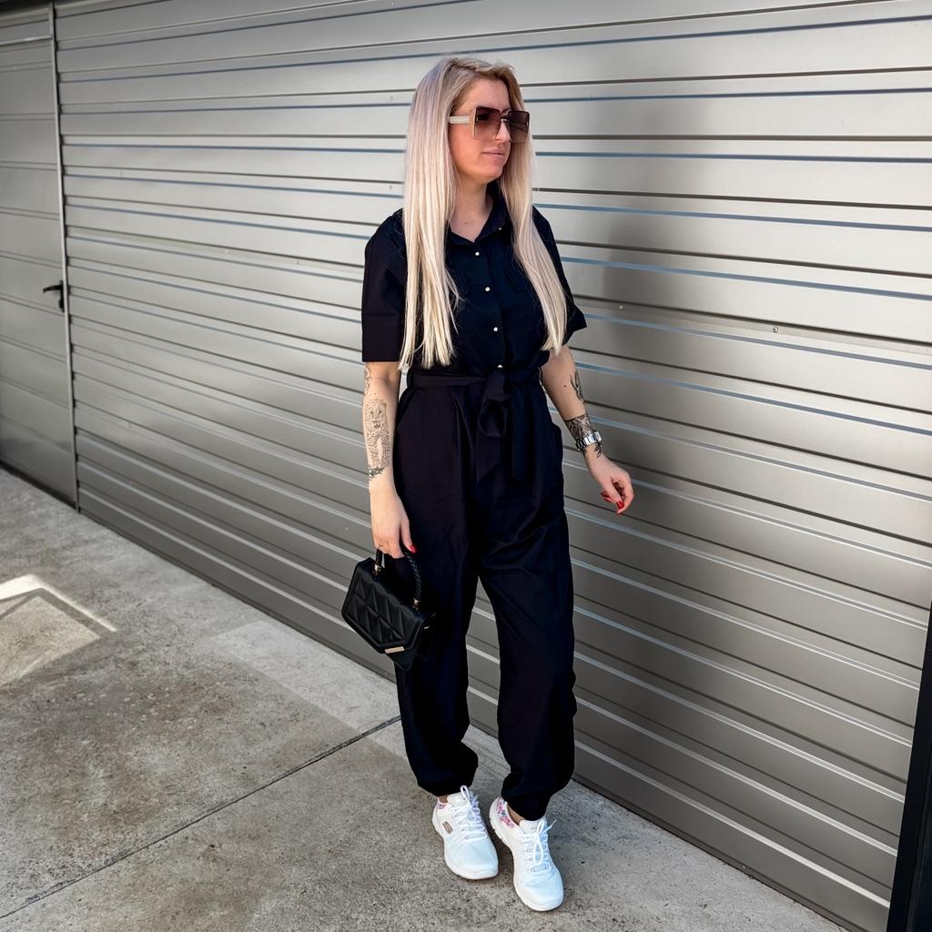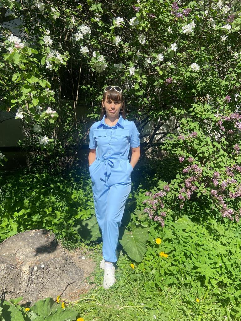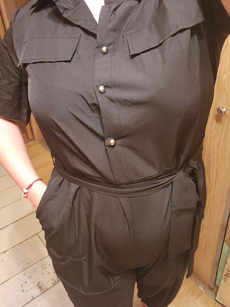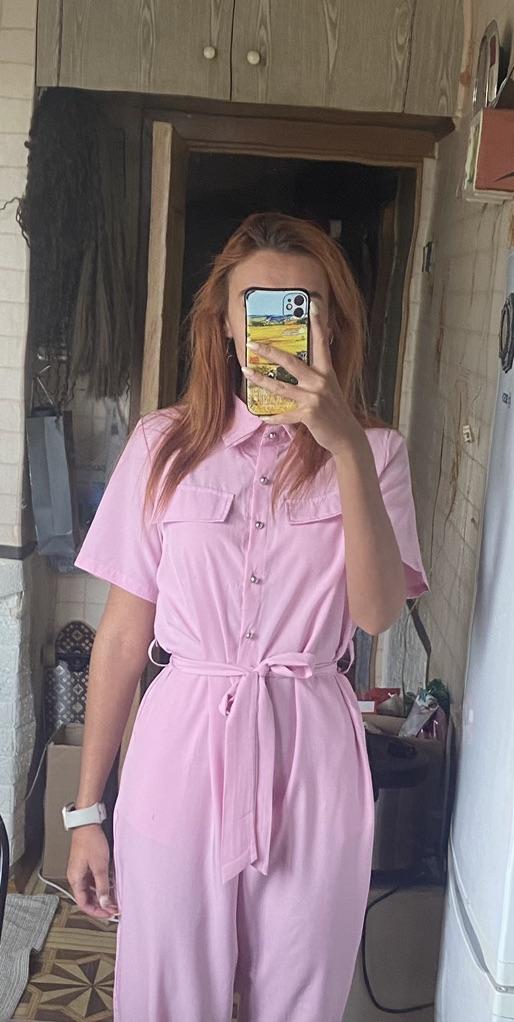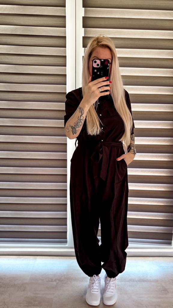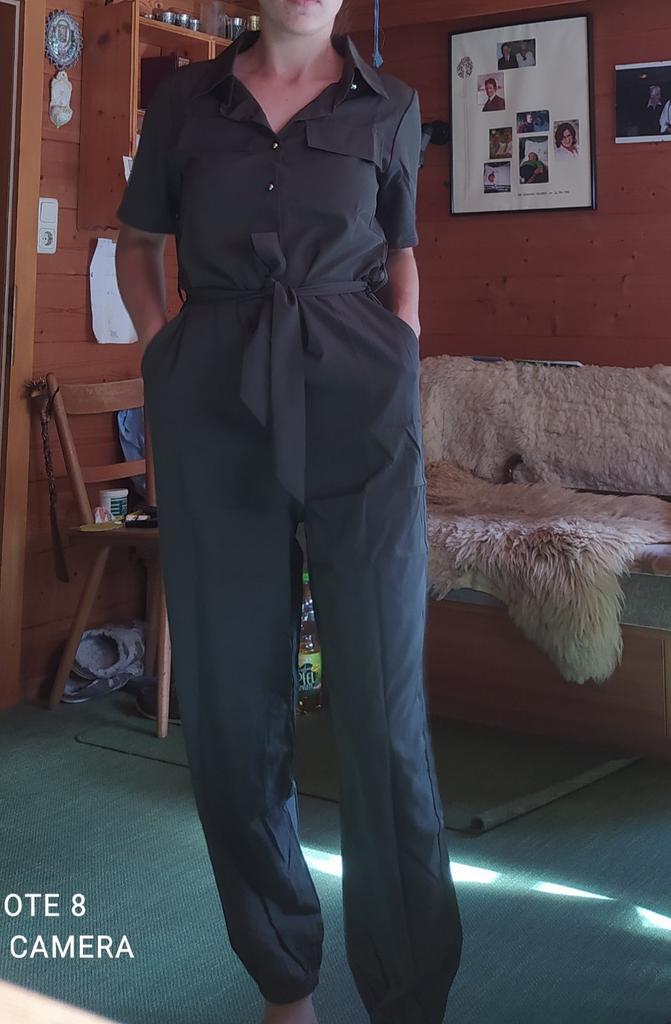 I ordered the jumpsuit in size S, but unfortunately it is quite big for me. ❗️❗️❗️Be careful with the description below the size initials, they are misleading. The material is quite light and pleasant, but since you can't wear the coat anymore, I don't think it matters anymore.