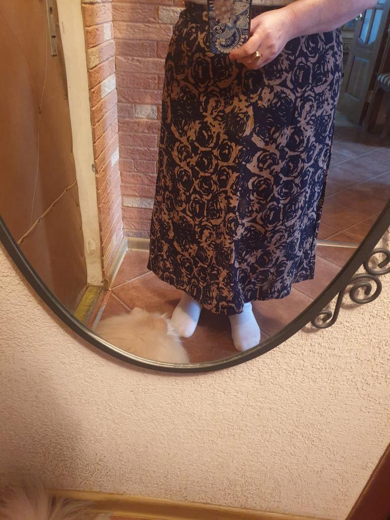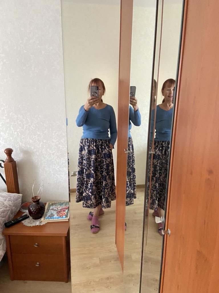 I ordered 6XL, but in reality it most likely corresponds to size 48, the skirt is slightly flared, although it looks wide in the photo, there is no lining!