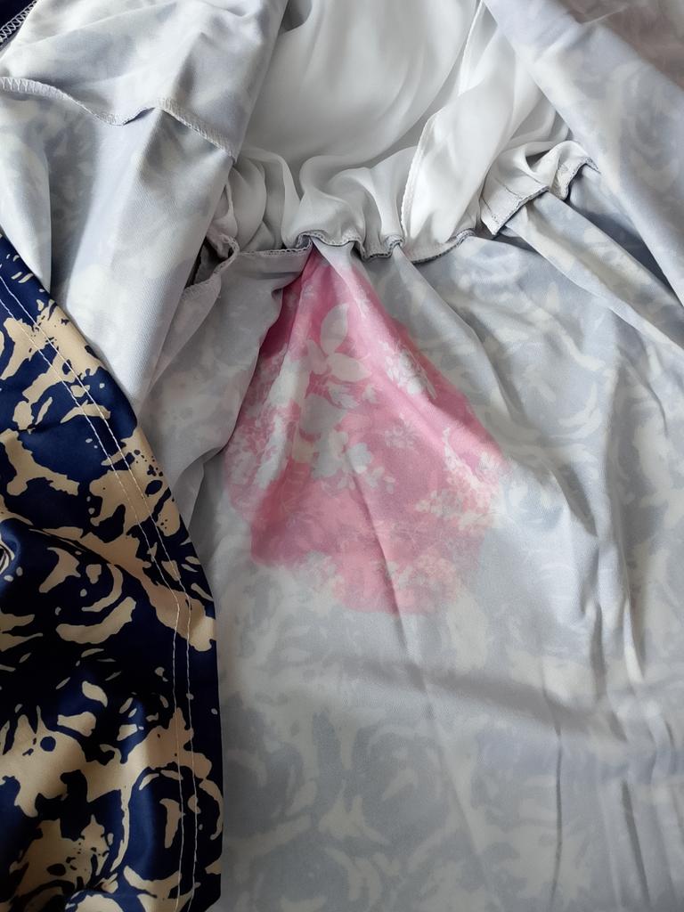 One half of the skirt is pale, the other is beautiful, clear, there are holes on the side