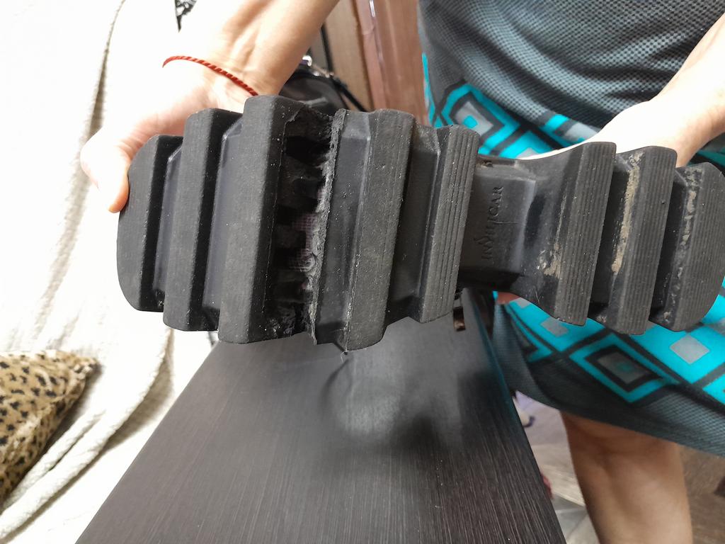 In one shoe on the sole (from the inside) a nail about 1 cm sticks out. Do you need a video?