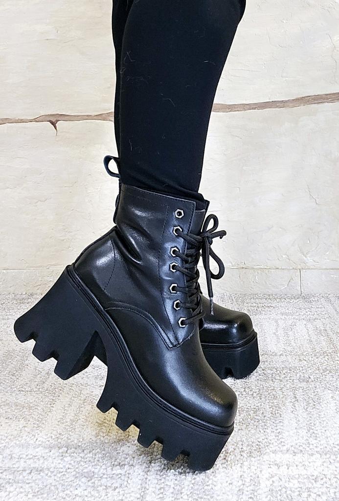 Women Booties High Heel Large Size Square Head Genuine Leather Women Ankle Boots Platform British Style Fur Winter Boots Women