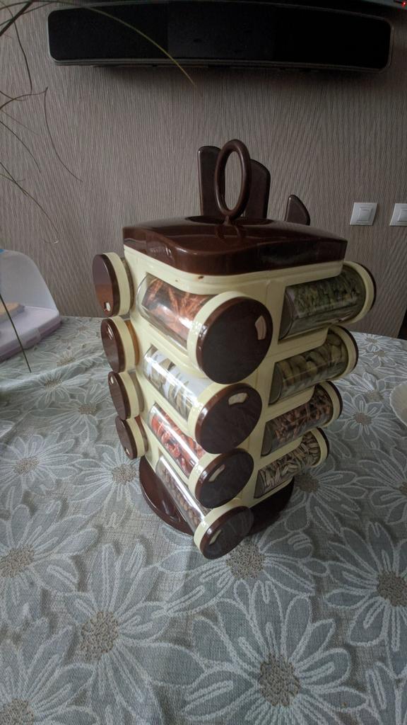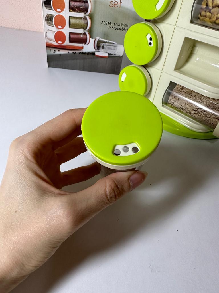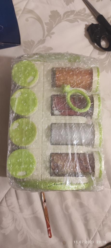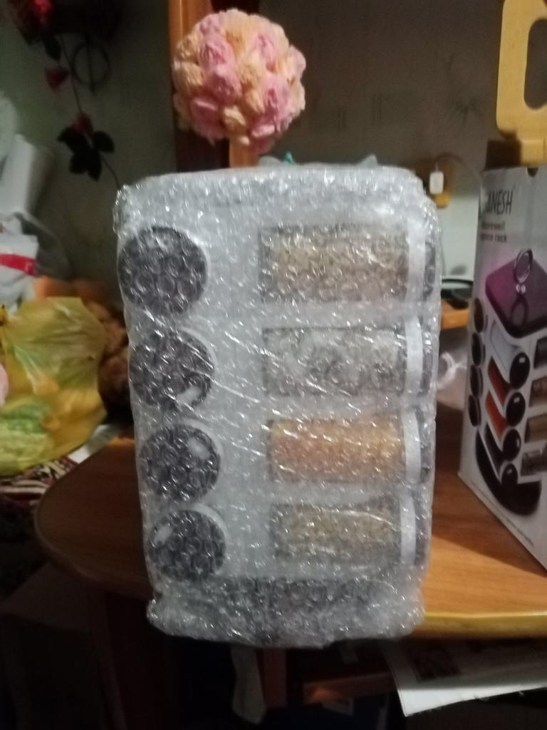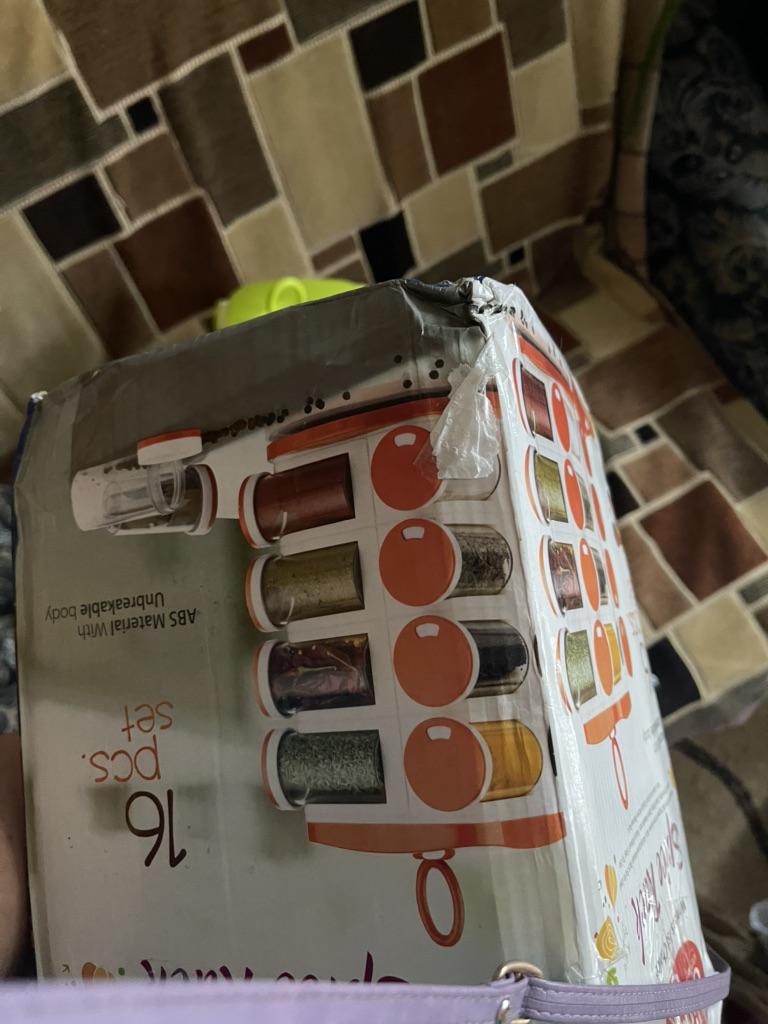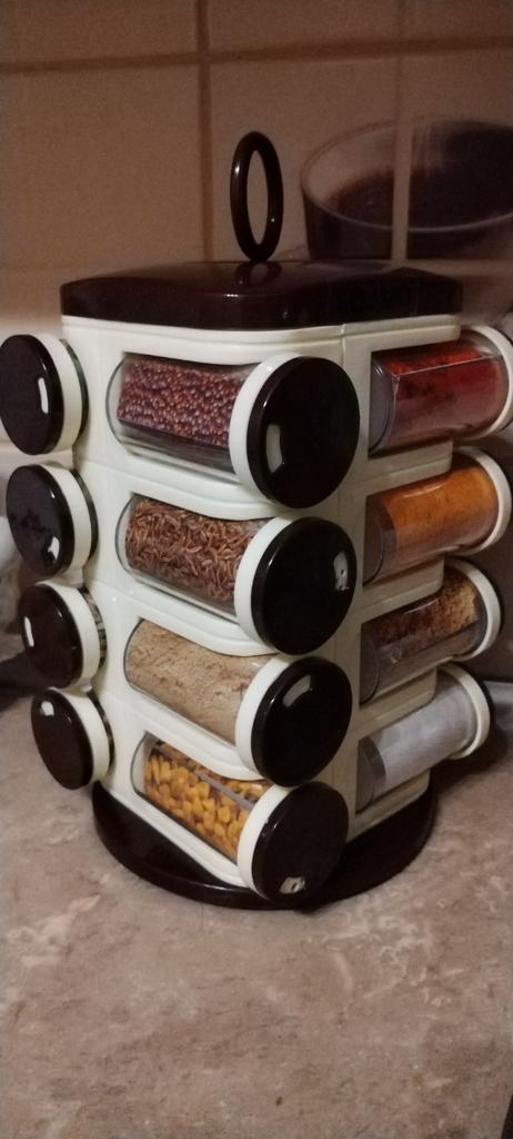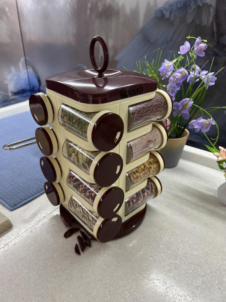 Satisfied, SUPER. Great item for the kitchen. 16 containers for spices. The rotating set is very convenient. Saved a lot of space in the closet. Just great. Thanks Joom, I'm glad.