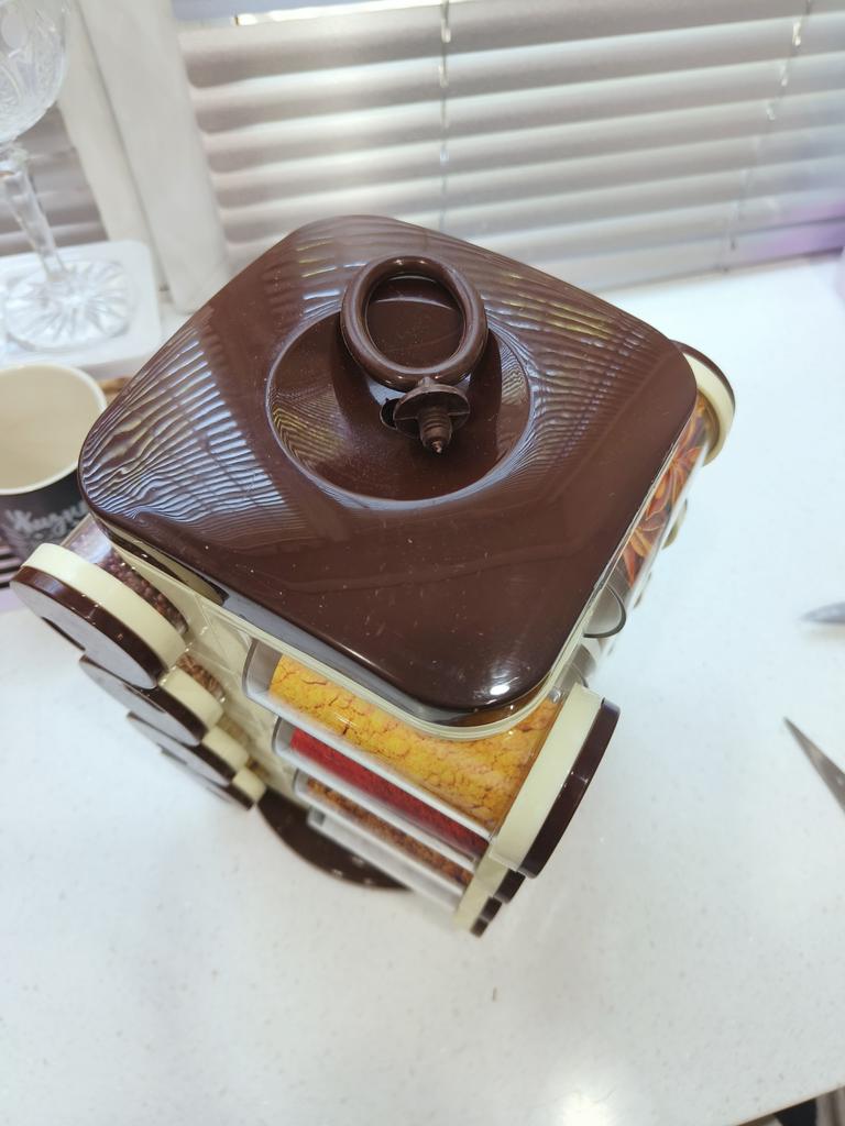 A great rotating spice rack. Turns well. Small defect in 5 places. Lid worn on a can that looks like it was used. For the price... well. Then I had to pay more than 12 € customs fees. That should also be mentioned. I contacted joom and was refunded the fee in the form of points. They also came to meet me for the shortcomings.