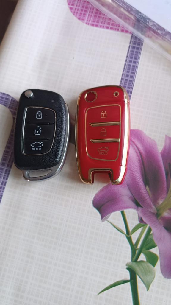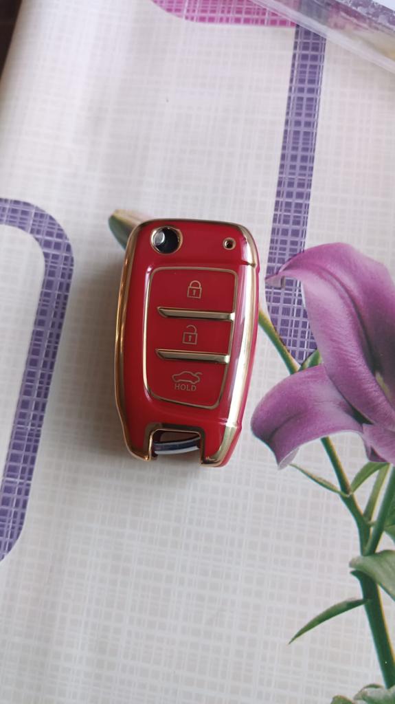 Gold Edge TPU Car Flip Key Case Cover For Hyundai Elantra Solaris Tucson I30 I35 I40 KONA Genesis Santa Fe Azera Holder Shell Keychain Protector