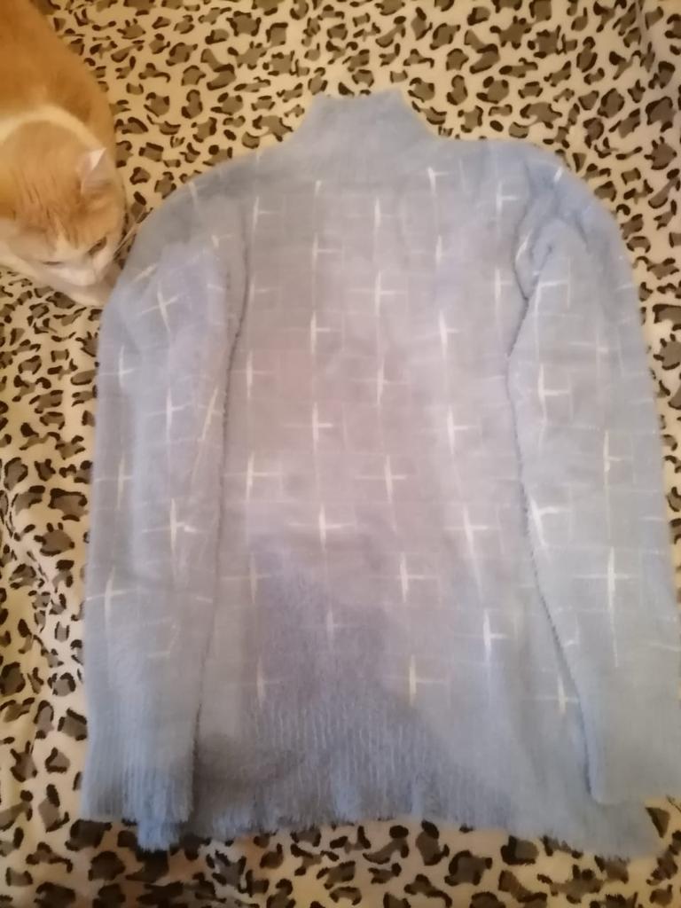 Received an order. The blouse is super soft fluffy and looks like an angora, but itโs very small: 4 x x 46 size, The blouse is beautiful, too bad it's small.