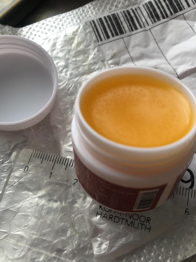 With a light touch on your finger, a pronounced smell immediately appeared - like “Vietnamese star”, balm... the consistency is homogeneous, pleasant orange color... it doesn’t flow, it doesn’t fall out of the jar, but I think it needs to be stored in the refrigerator... everyone have a pleasant and healthy shopping experience!