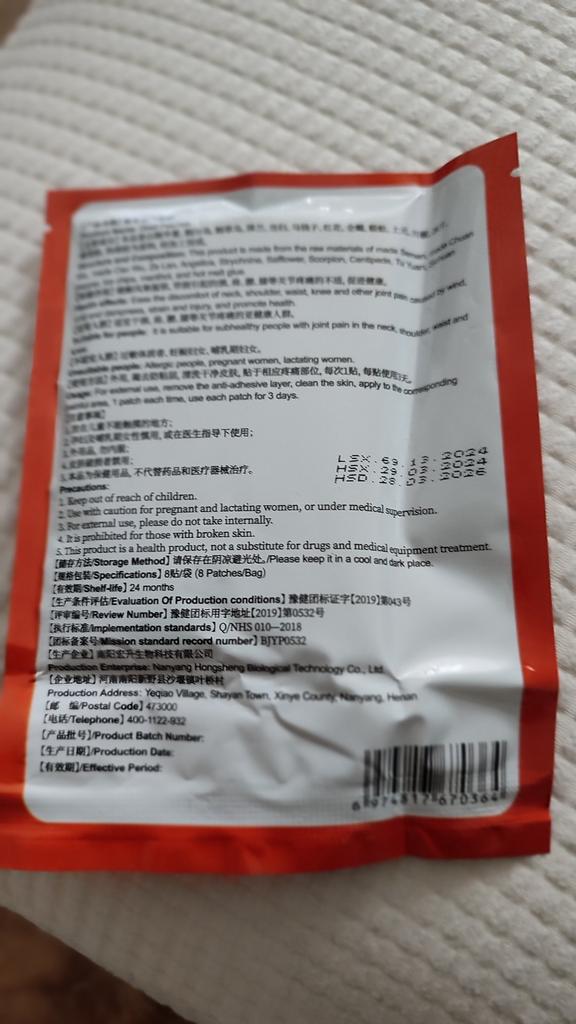 thanks. I received it and immediately decided to protest, although there was no need, I did not feel pain. thanks. And although the characteristics of this product indicate that it is not a medicine, but according to my personal feelings, this patch is a miraculous and effective means of healing, because immediately after this sticker wrapped around my problem area on my leg, I felt "cooperation" of my body with this little piece of Chinese miracle. Thanks to the seller and everyone involved in providing quality services. I wish you health and luck. Good luck!
