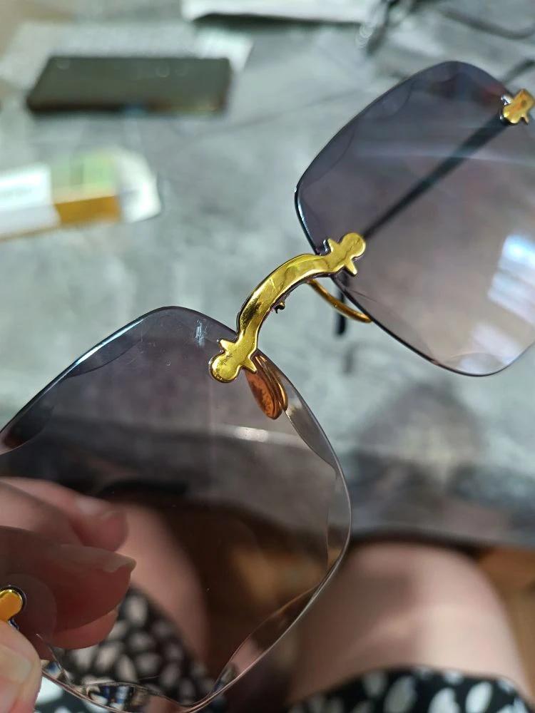 Vintage Fashion Sunglasses Rimless Frameless Rectangle Shades Gradient Summer Traveling Women Non Polarized Glasses