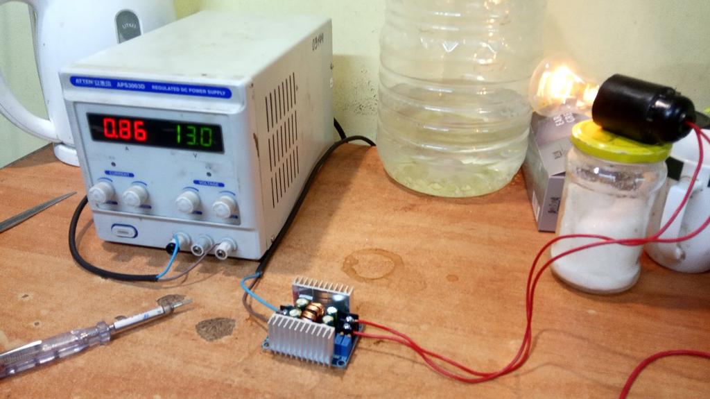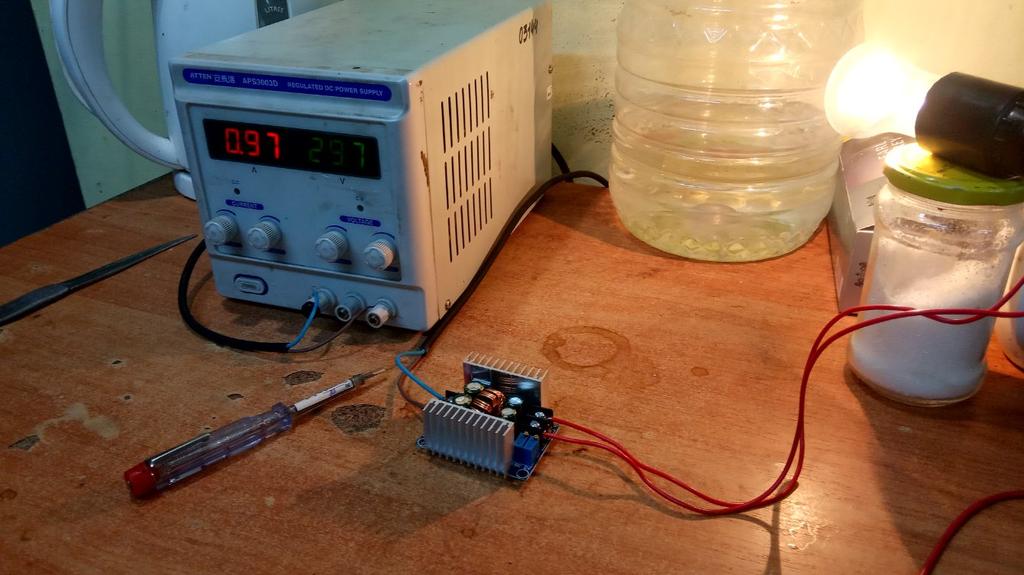 The efficiency is not very good. To get 12.5V at the output, you need to apply 18V to the input at a current of no more than 1A. If the output voltage drops more.