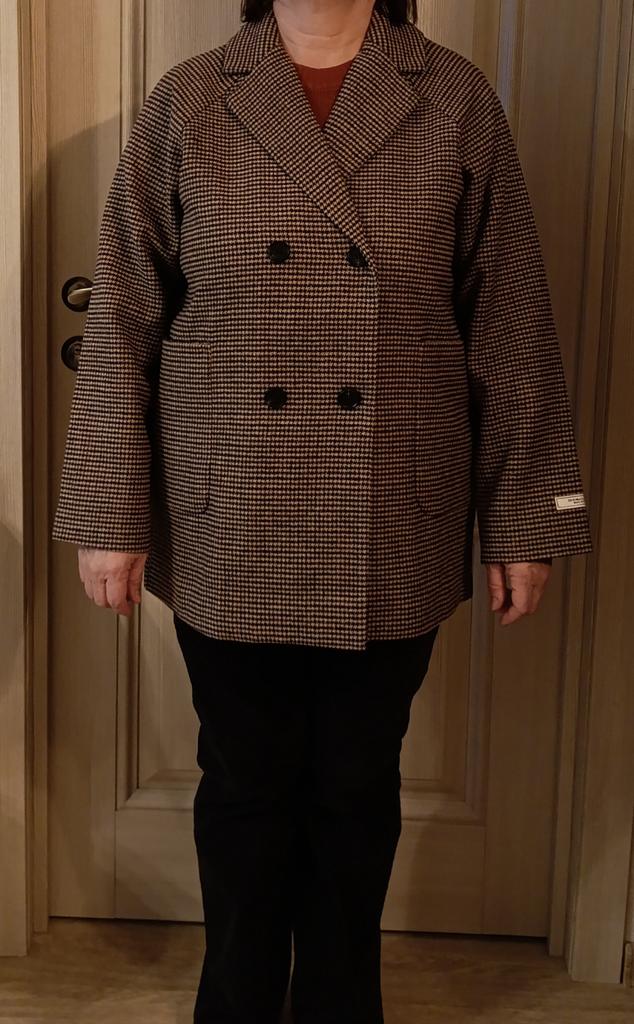 The package took two months to arrive. The fabric and style are normal. The coat is too big for size 46-48. The coat is for a full figure.