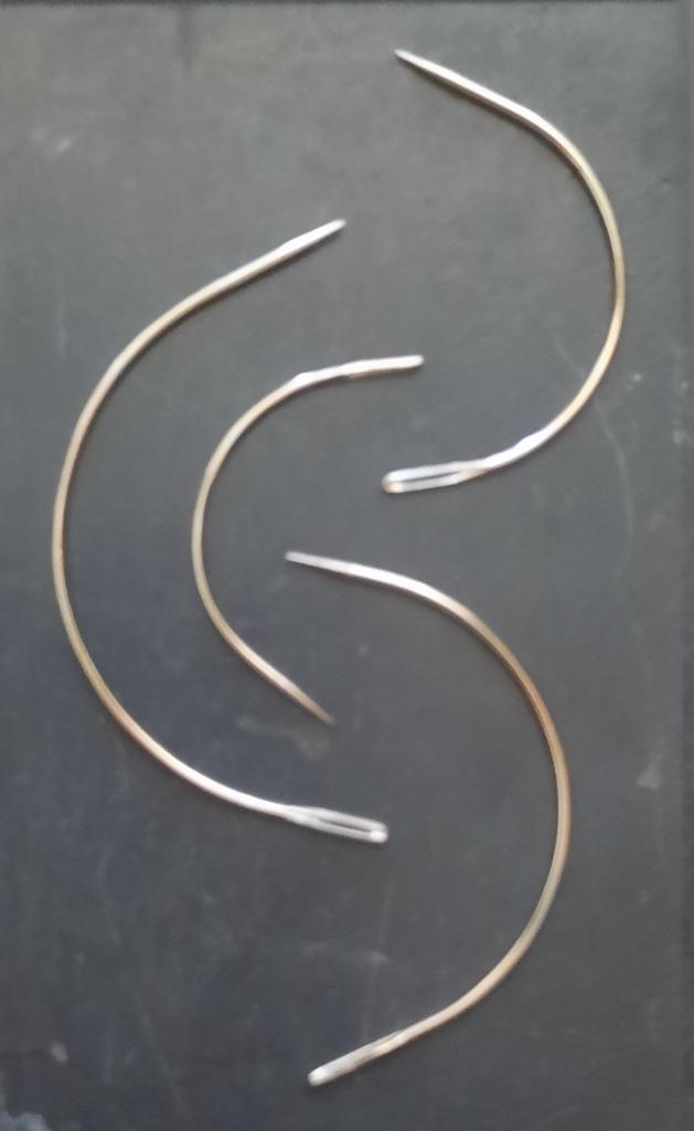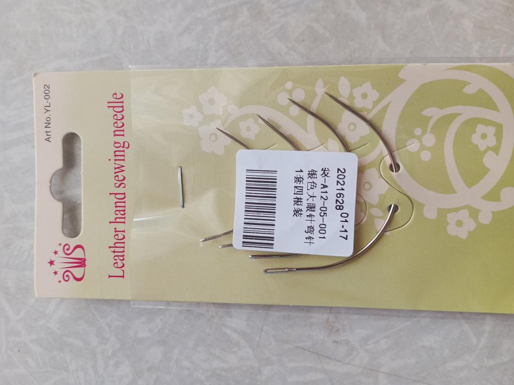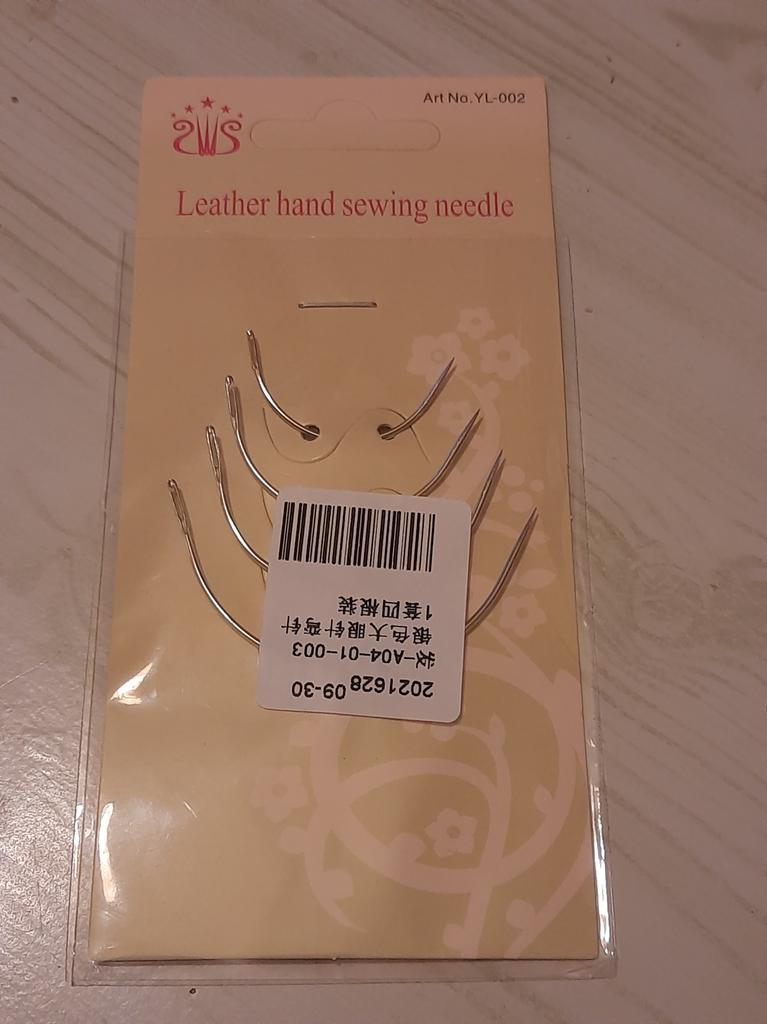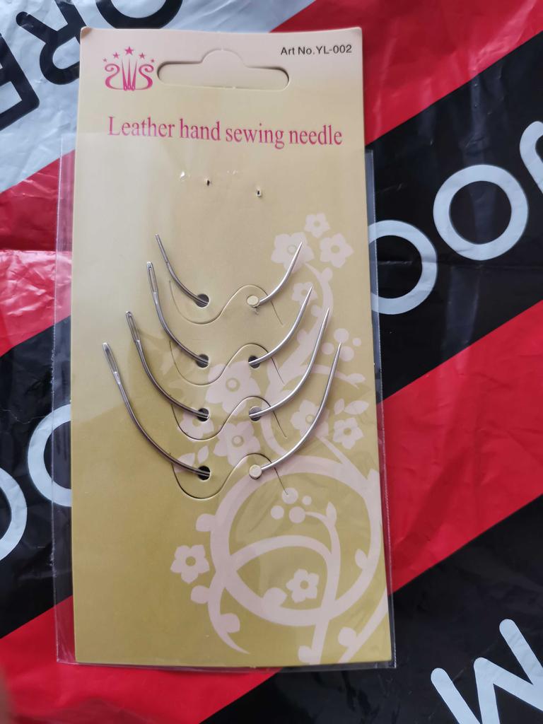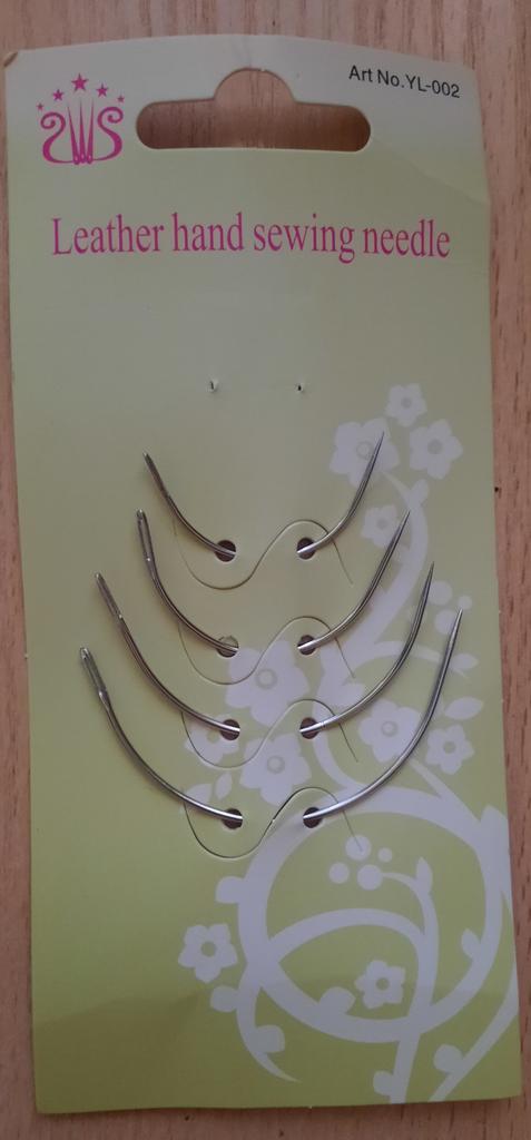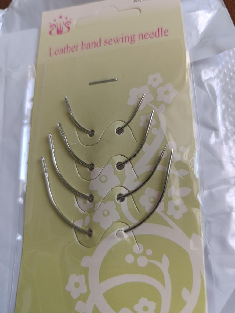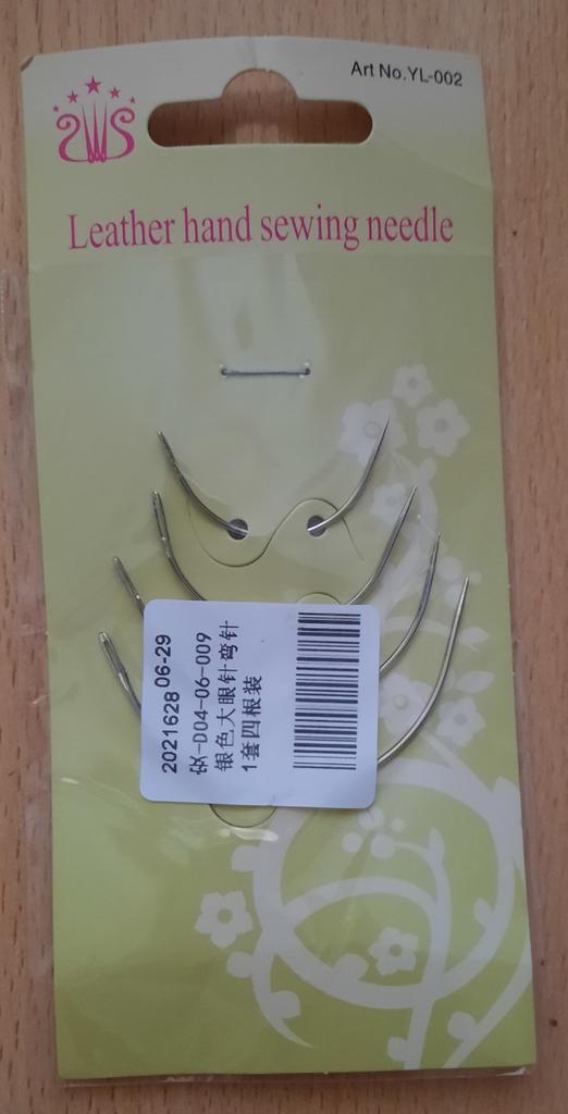 The set contains 4 needles of different sizes and thicknesses. They are well-sharpened, and the thread passes through the eyes easily, so the set is quite practical for sewing leather.