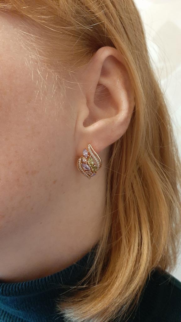 PATAYA Colorful Artificial Zircon Italian Craft Classic Geometry Earrings Two Colors Cute Earrings