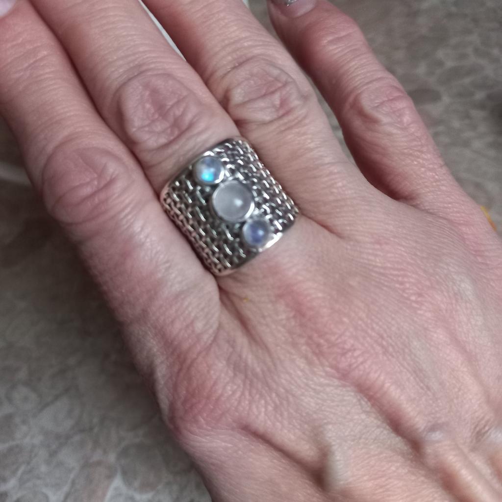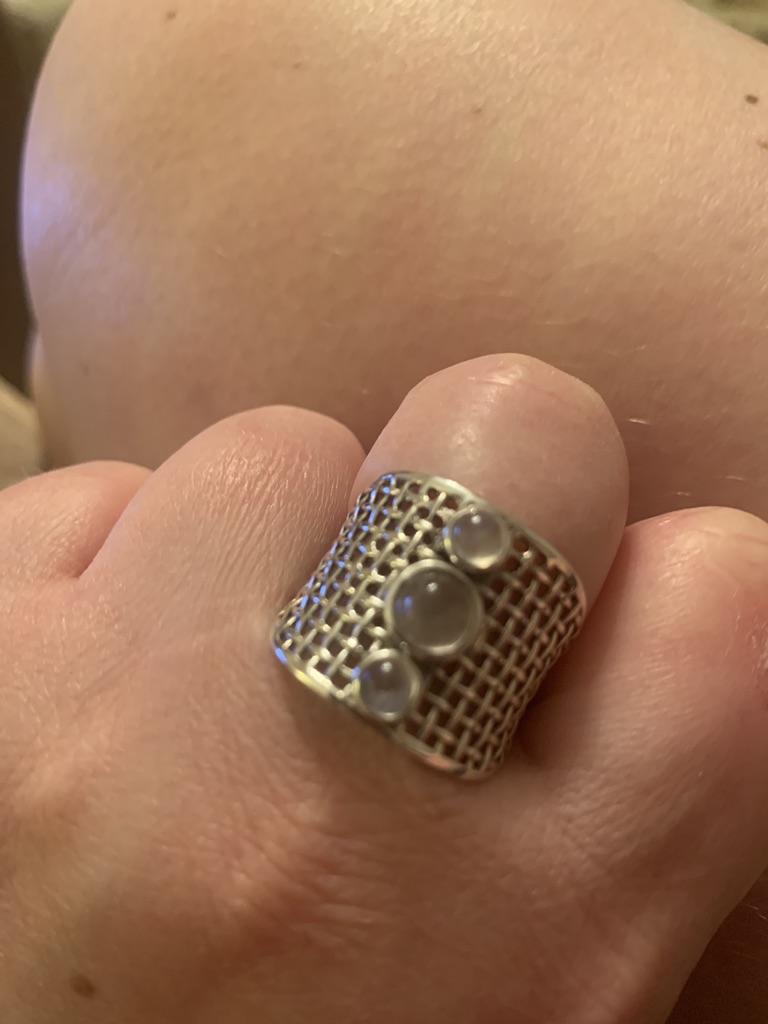The ring is not bad, but the stones are more like rose quartz than moonstone, although it may be, but it is too transparent and the iridescence does not even look back. The sample is worth it, but I'm not sure if it's silver, rather, silvering. The price is too high in my opinion. Although it looks cute, I will wear it carefully, but it's not worth the money.
