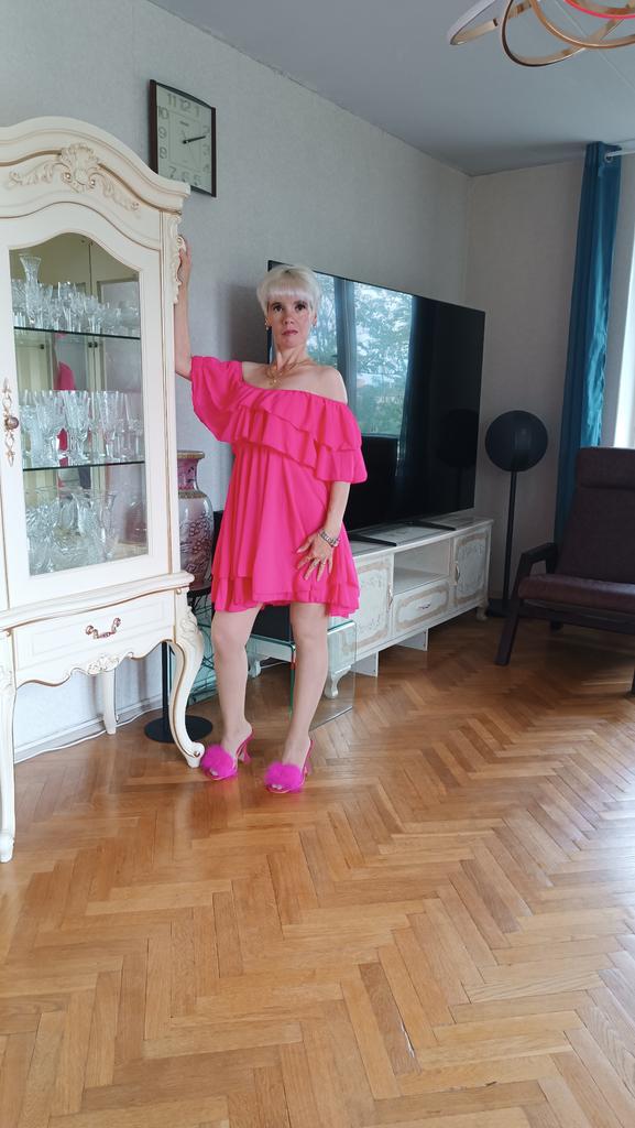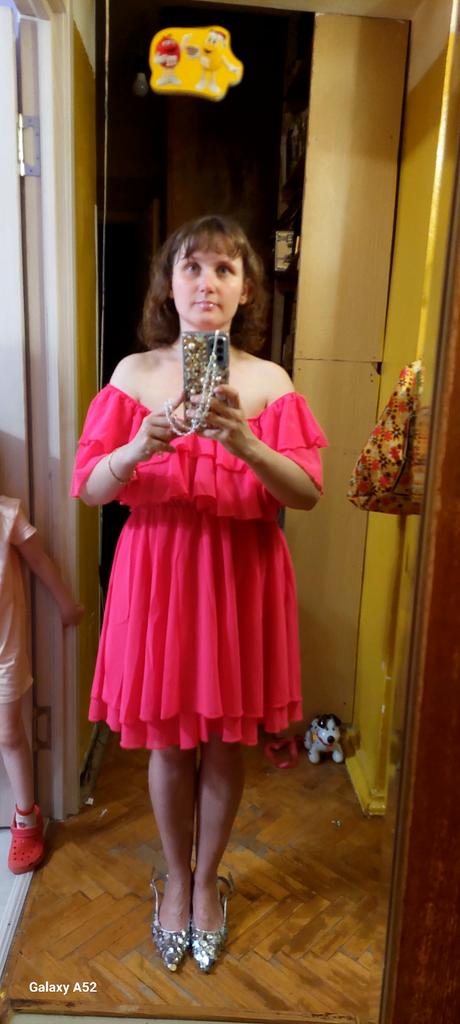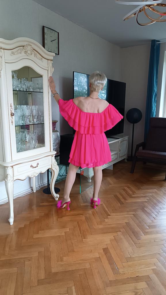 Beautiful pink dress. The size fits perfectly. The length is mid thigh. It looks really cute when dressed. Delivery took just over 4 weeks due to customs issues.