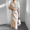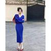 French Elegant V-neck Wool Dress, Celebrity Style, Thin In Autumn and Winter, Knitted Dress, Female