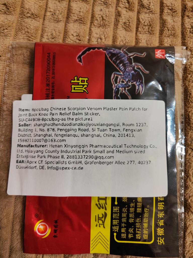 8pcs/bag Chinese Scorpion Venom Plaster Pain Patch for Joint Back Knee Pain Relief Balm Sticker