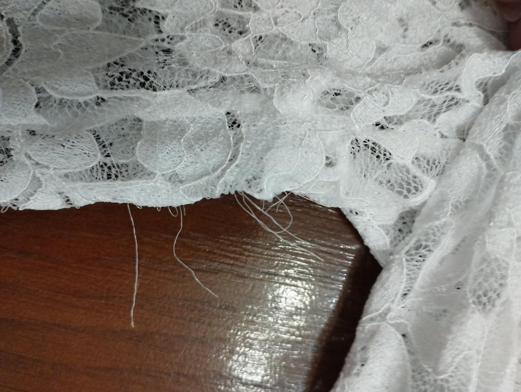 The fabric is nice, there are a few threads, but the sleeves are very loose, there is also a ridiculous cuff at the bottom, it turns out there is one, it needs to be altered
