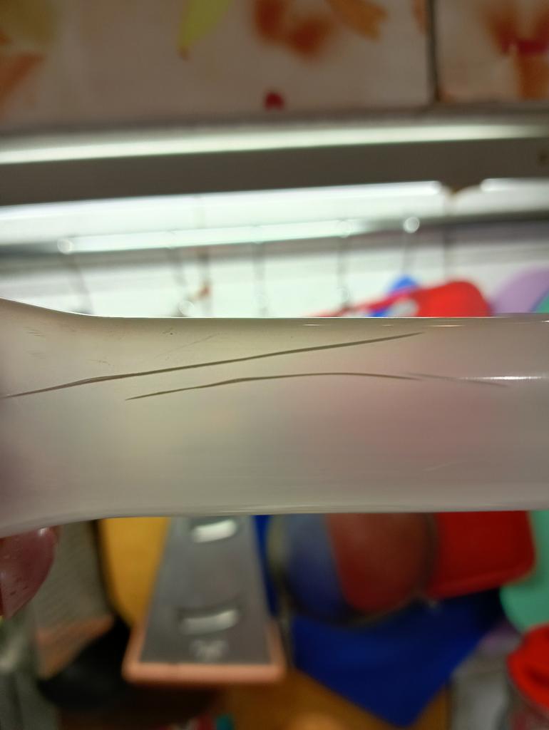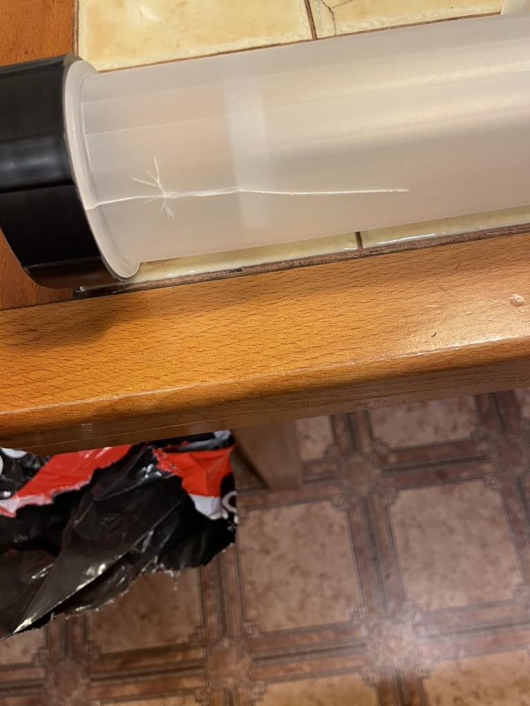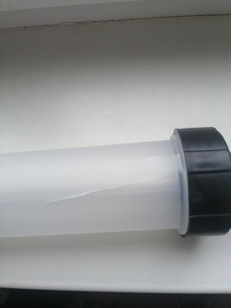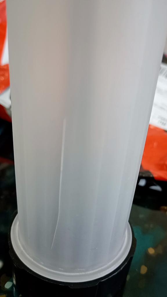 The syringe body has a crack. I hope it doesn't fall apart during operation.