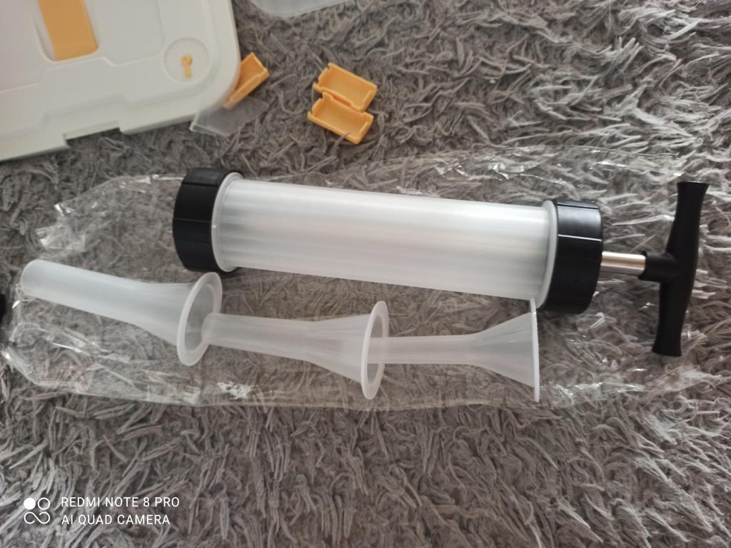 The sausage stuffing syringe is cute, I've been wanting to make homemade sausage for a long time, all that's left is to buy the intestines. Arrived whole, well packed.