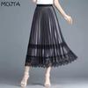 Spring Summer Women's Midi Mesh Lace Pleated Skirt Female Skirt High Waist Solid Slim Mid-length A-line Pleated Skirt