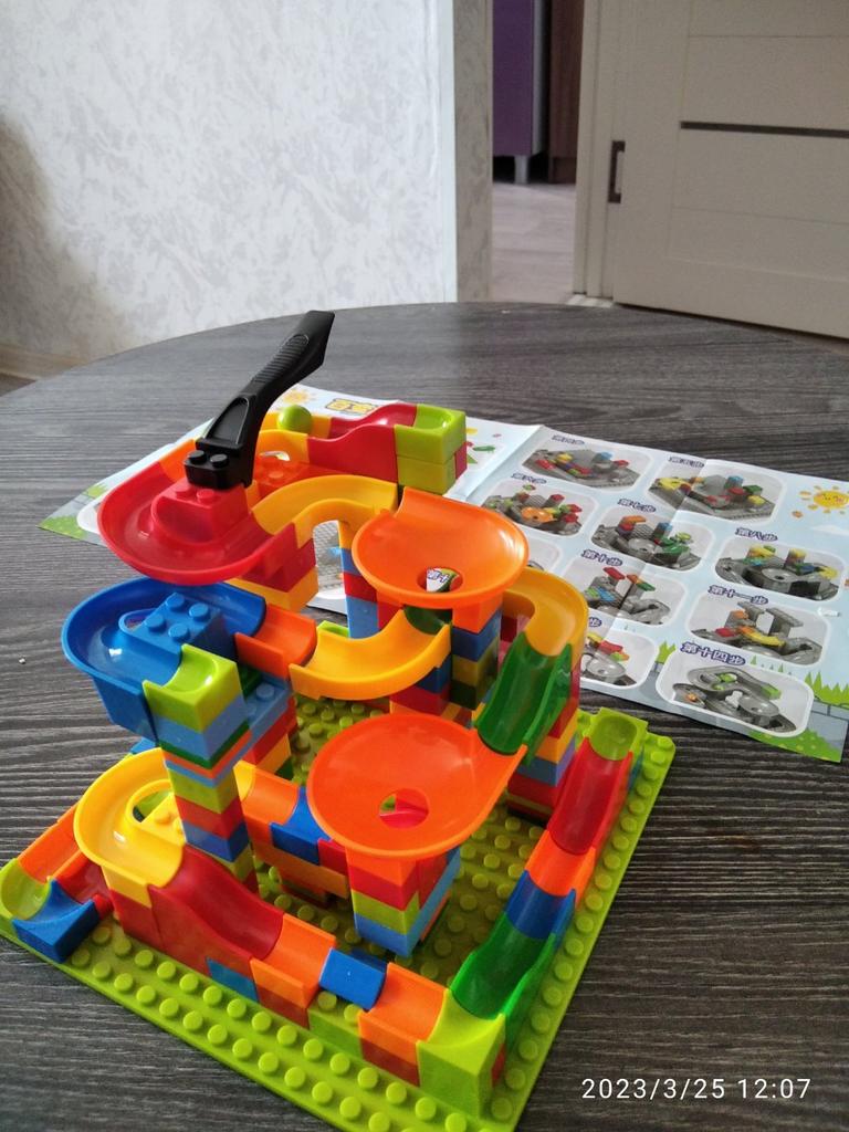 The size corresponds to a standard lego. If you assemble the "small", then everything is fine according to the instructions, in the "large" several parts do not match the color in the instructions. There are several additional parts in the set. The child plays with pleasure.