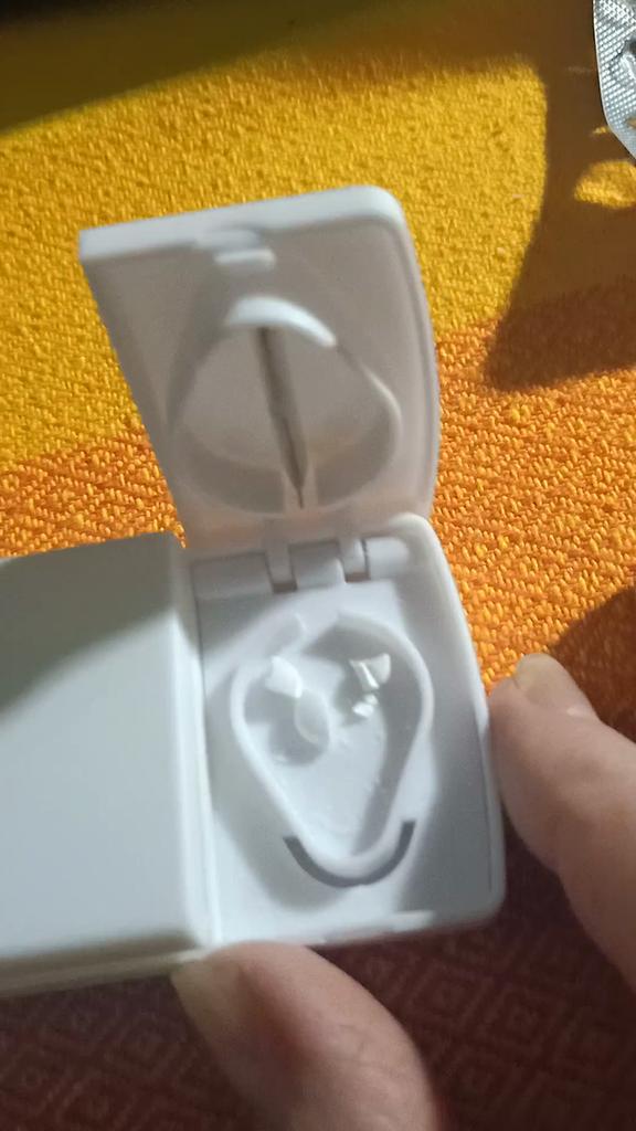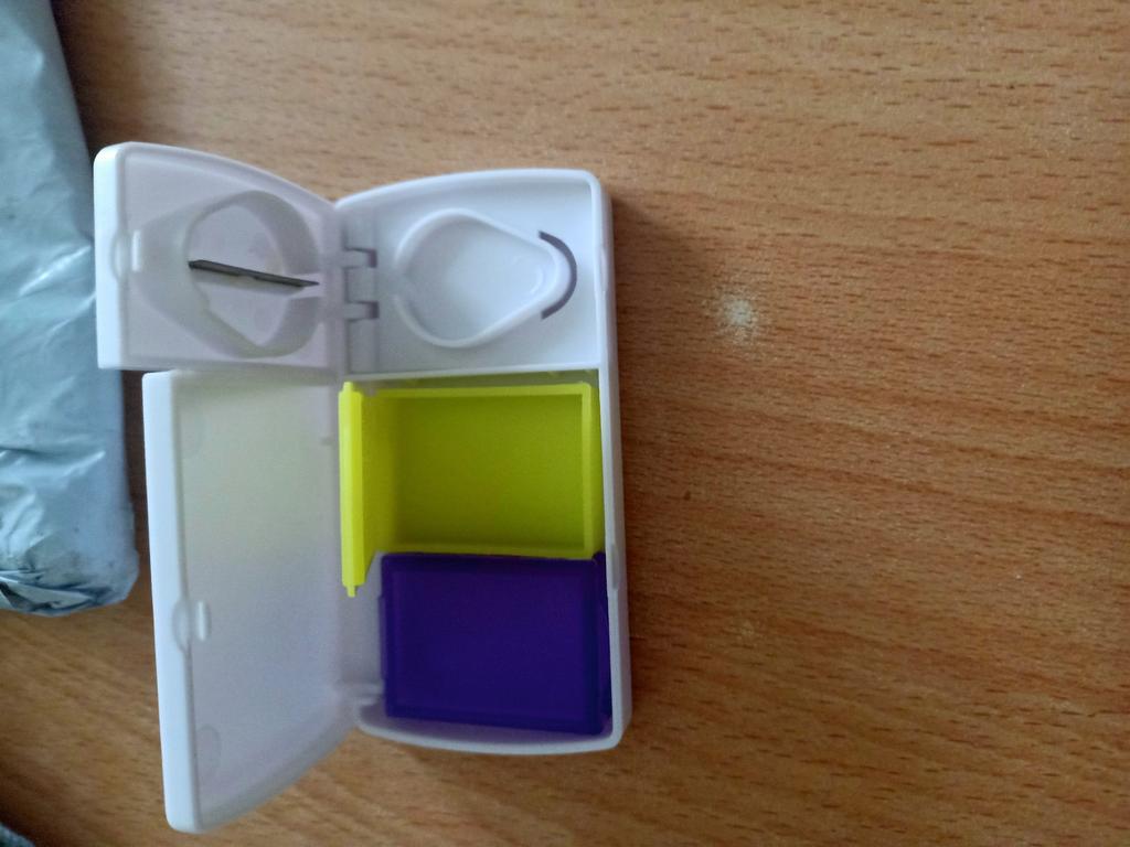 Compact plastic pill container plus pill splitter with cutter. But I can't manage to split the pill in half correctly. It always turns out unevenly. 🤷 Although overall it's a useful and convenient item. I probably need to get used to it.. Bought for 151 ₽.