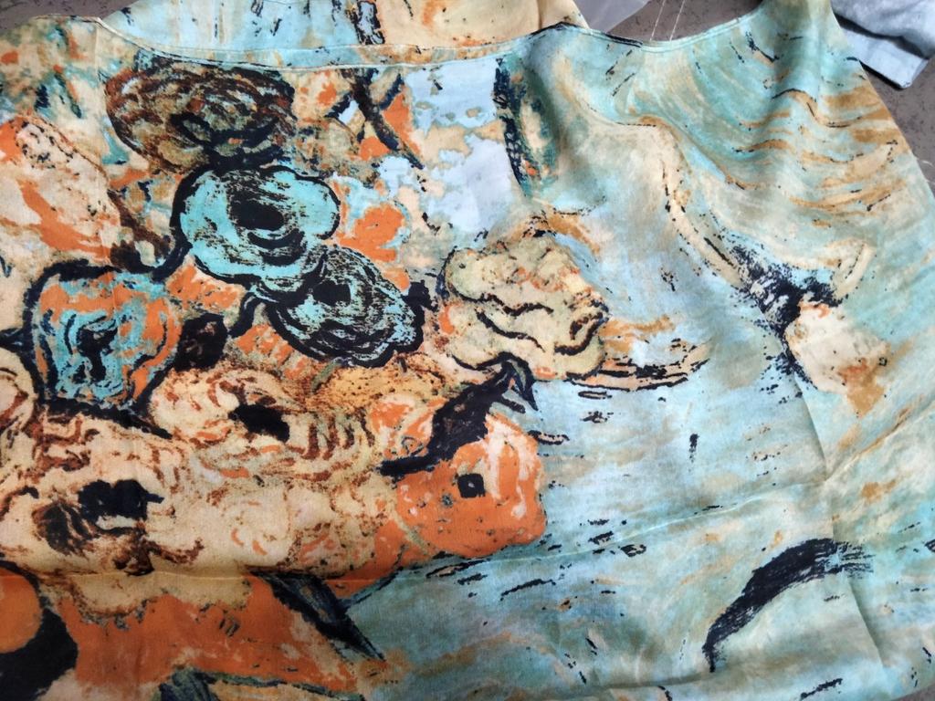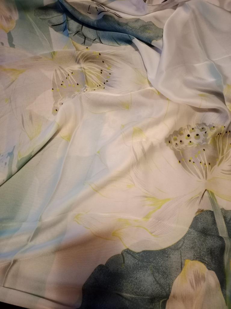 Very nice scarf, smooth and flowing, great colors and motif, but not a scarf for winter. Nevertheless highly recommended!
