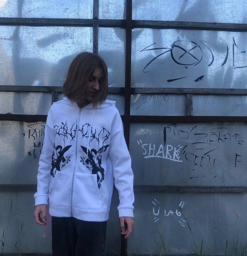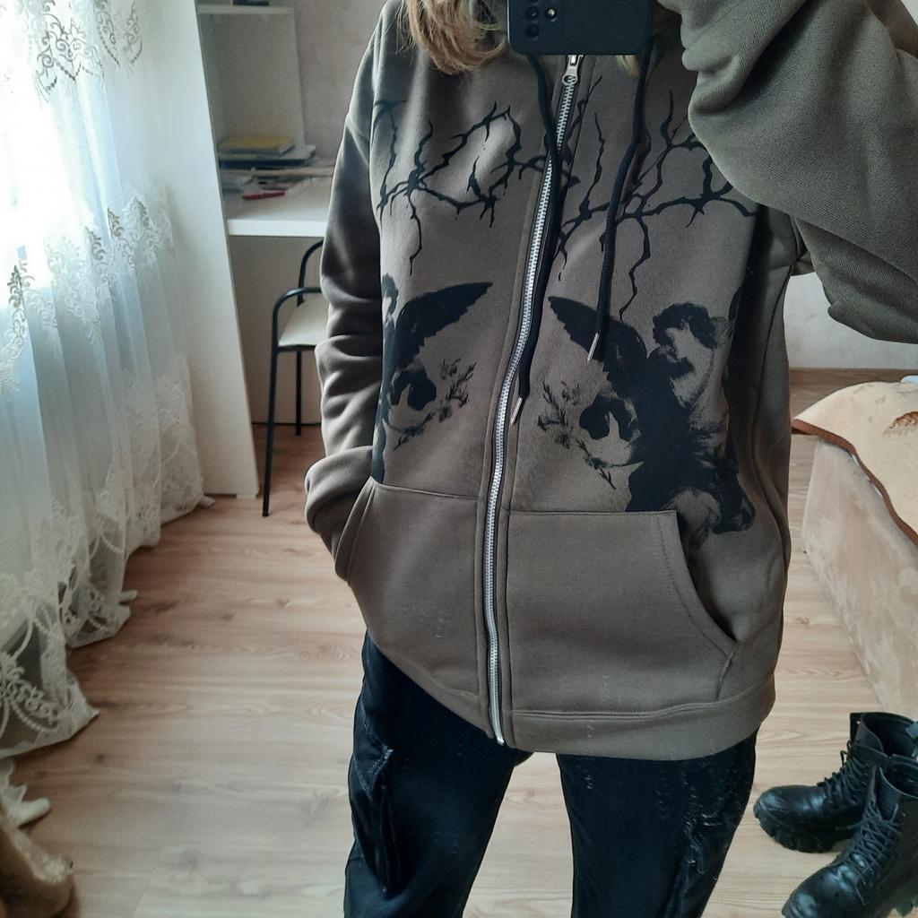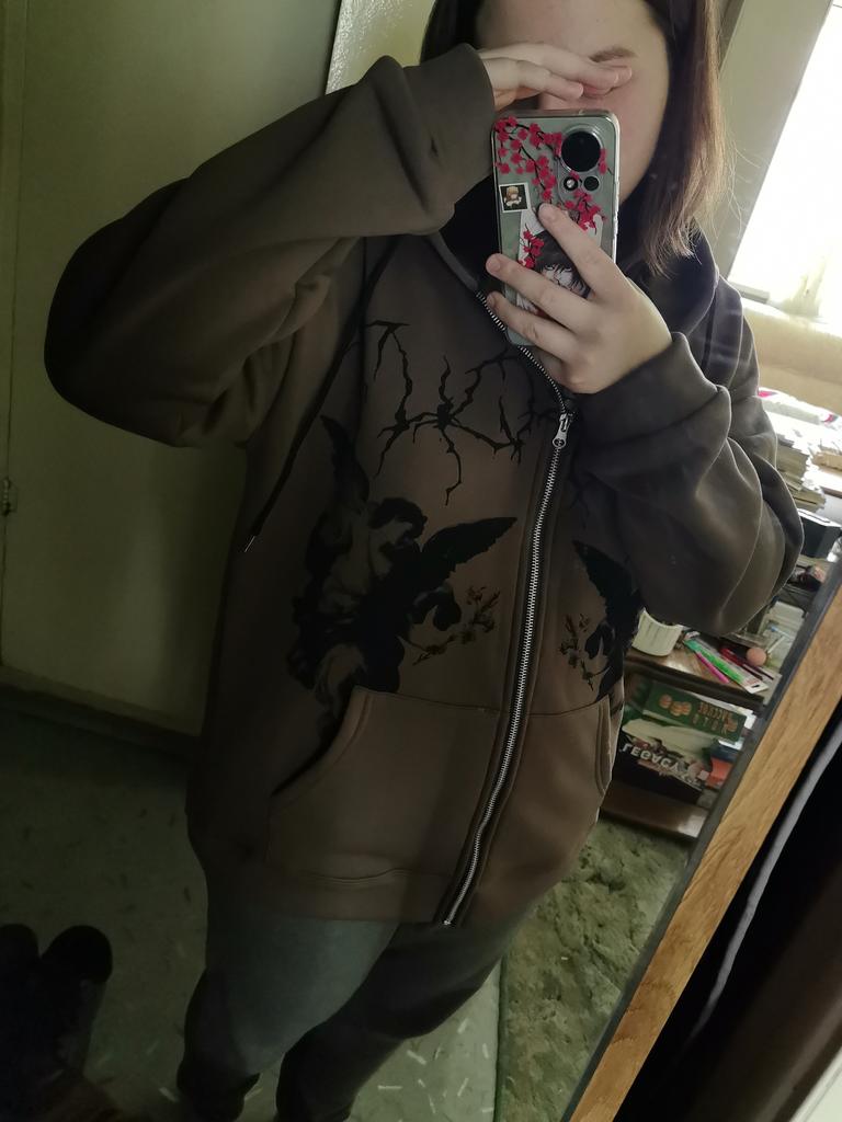 Women Vintage Angel Print Hoodies Female Zip Up Long Sleeve Pocket Streetwear Coat Autumn Winter Y2K Aesthetic Hooded Sweatshirt