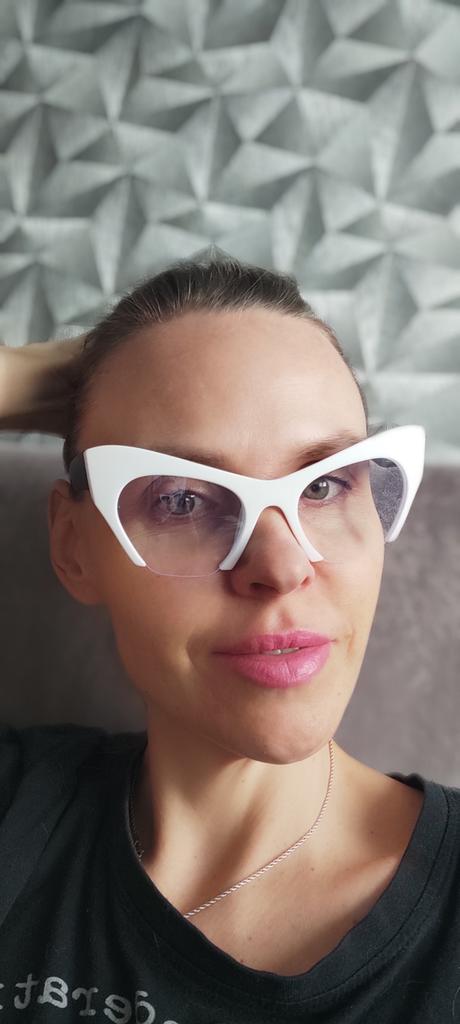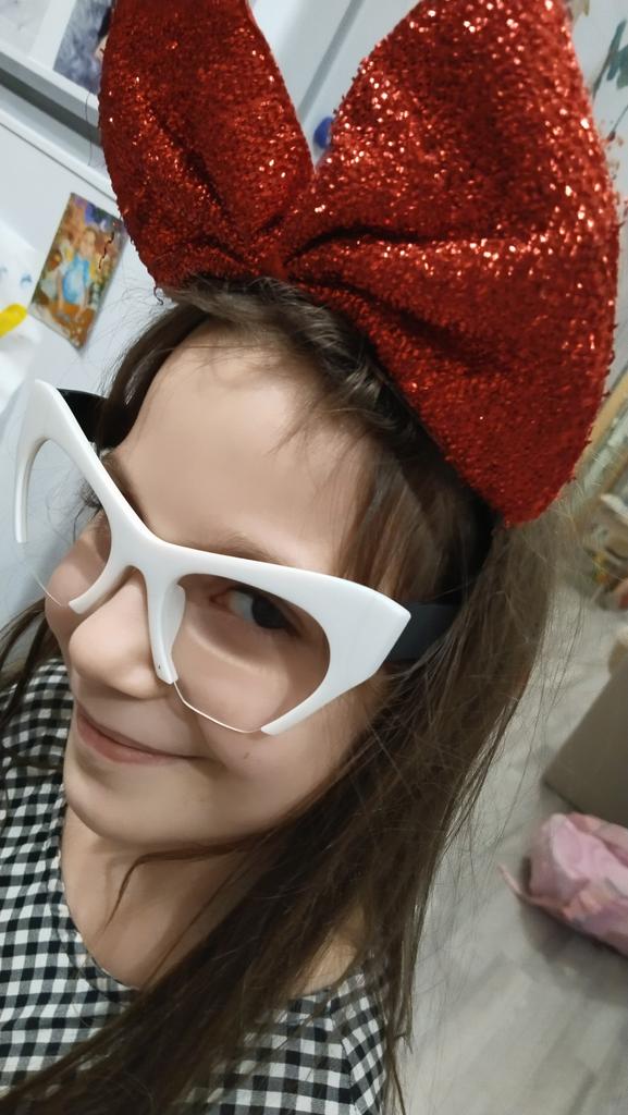 More like carnival or cosplay. Somehow they don't "sit" on the face, although this type of frame usually suits. They were selected according to the color of the image. The color matches