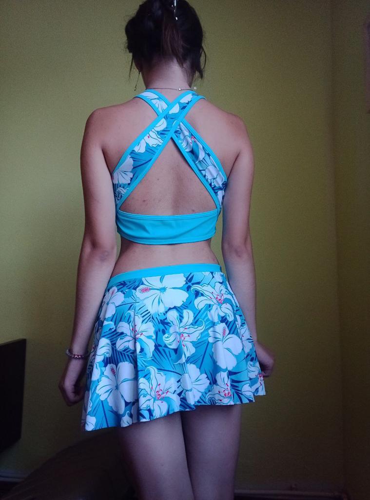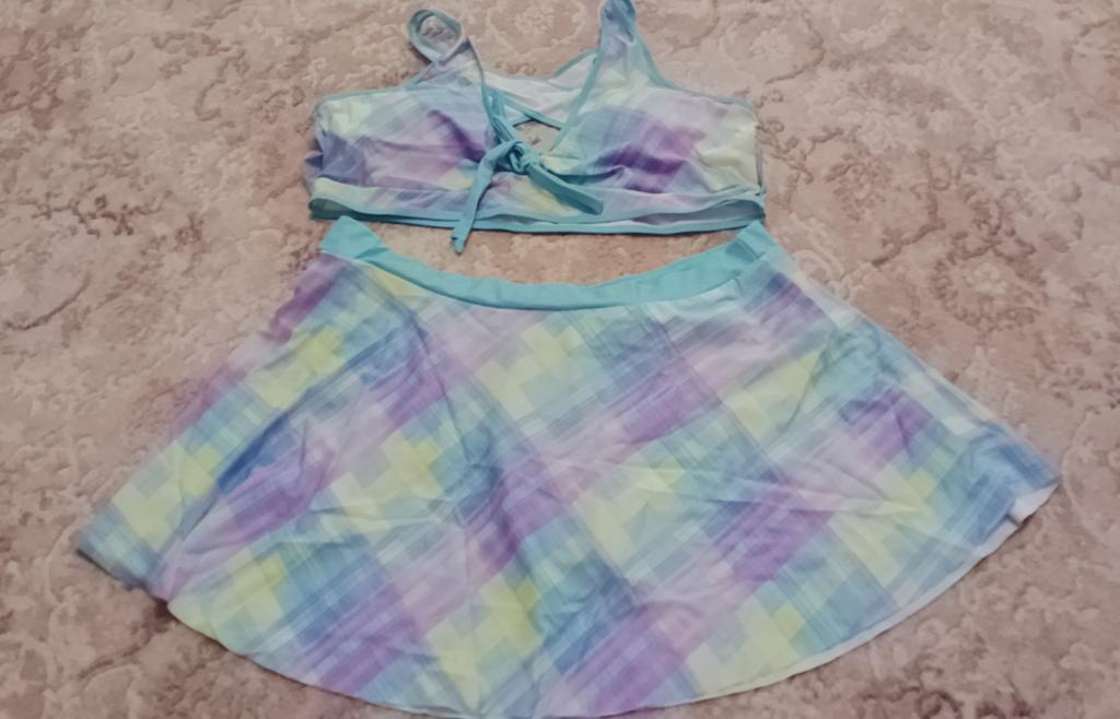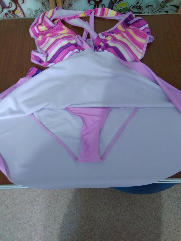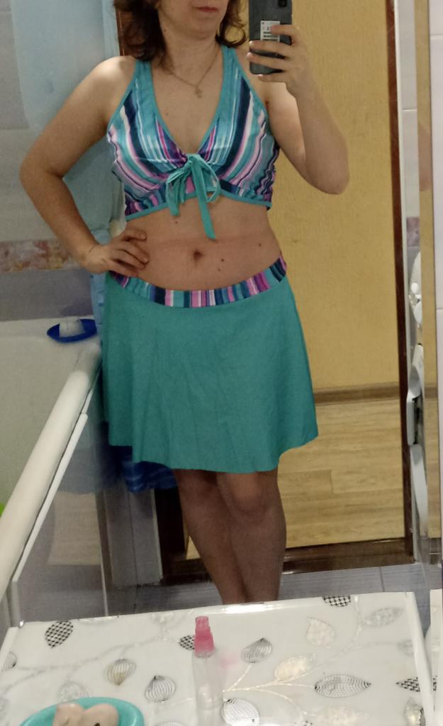 The swimsuit arrived, again complete disappointment. You can drown in the skirt, the bodice is generally awkward, the straps choke you crosswise on the back, it’s not convenient to put on, it flattens your chest, and on top of that, it has one liner and no other.