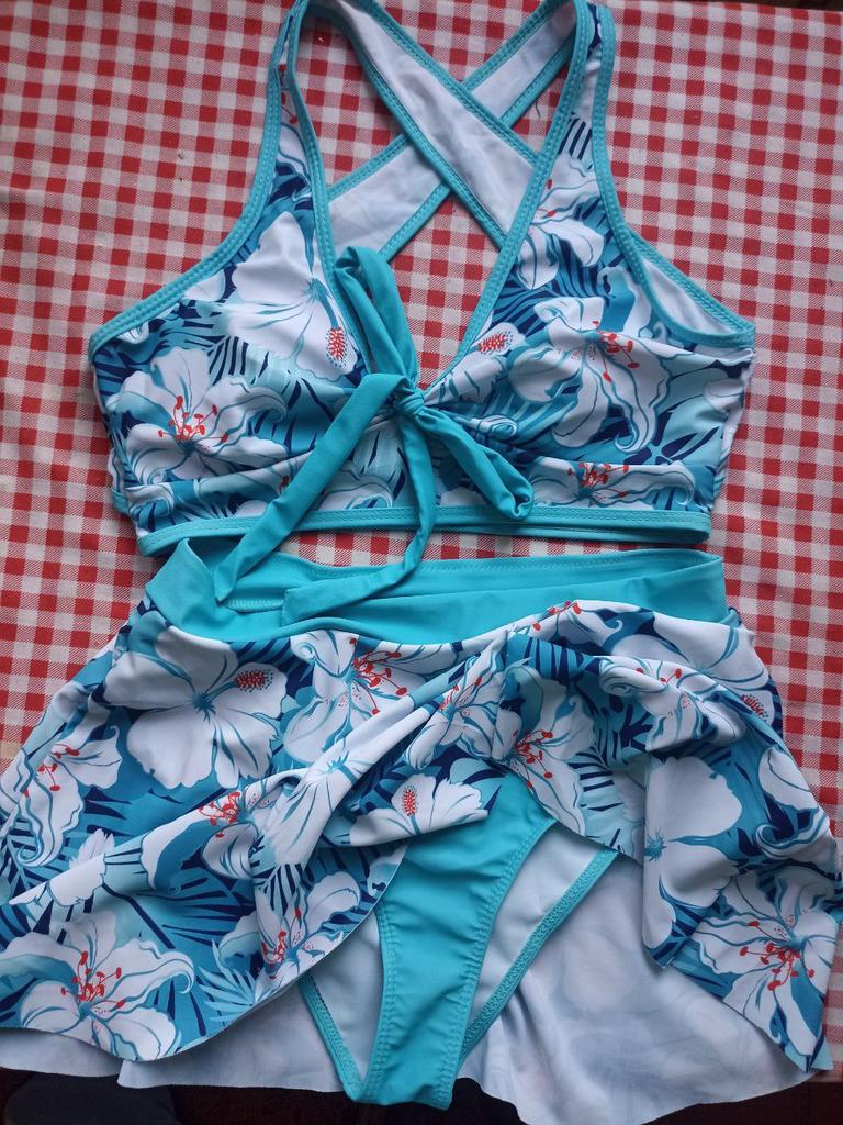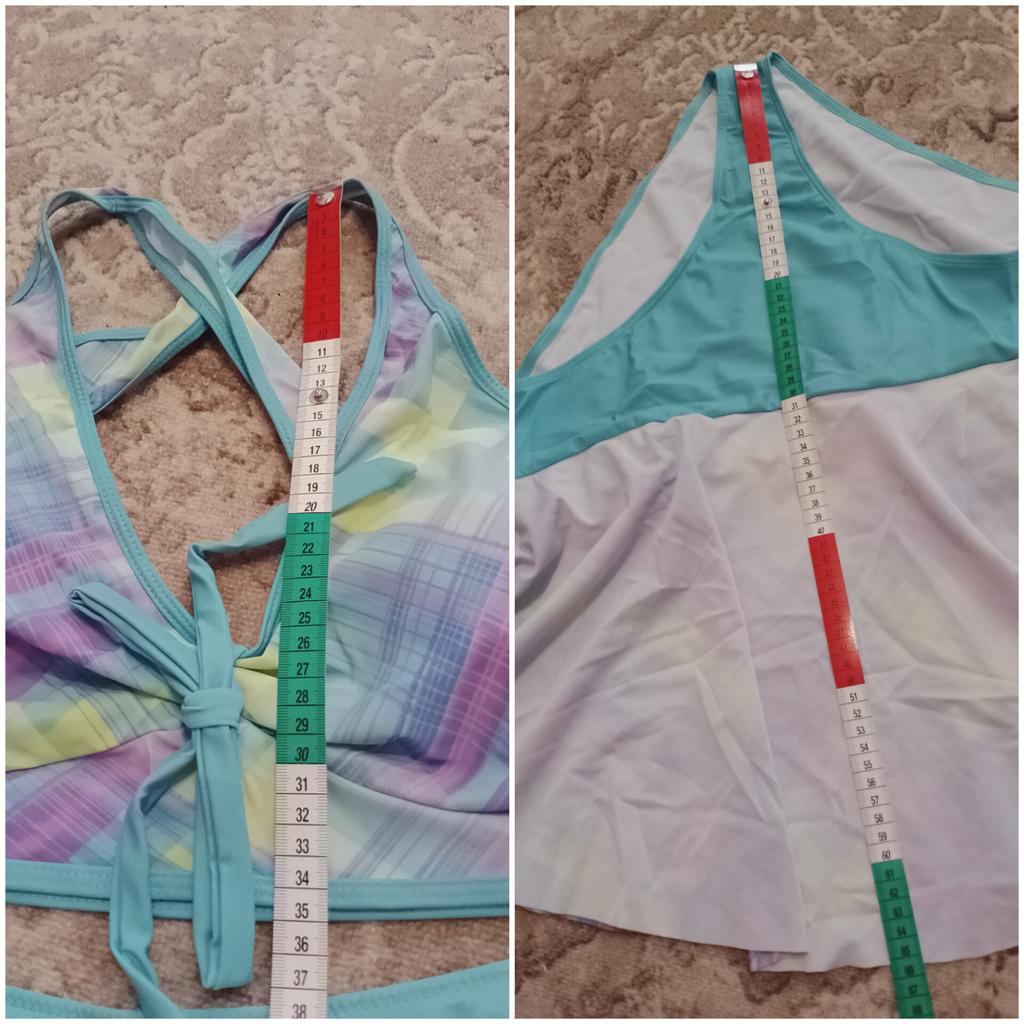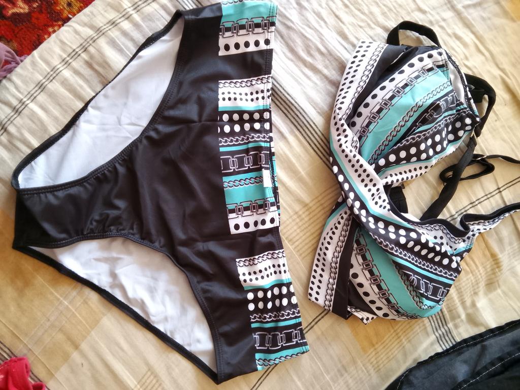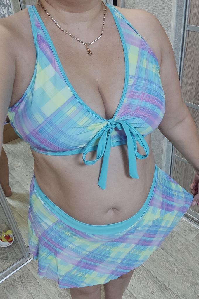 The swimsuit arrived, again complete disappointment. You can drown in the skirt, the bodice is generally awkward, the straps choke you crosswise on the back, it’s not convenient to put on, it flattens your chest, and on top of that, it has one liner and no other.