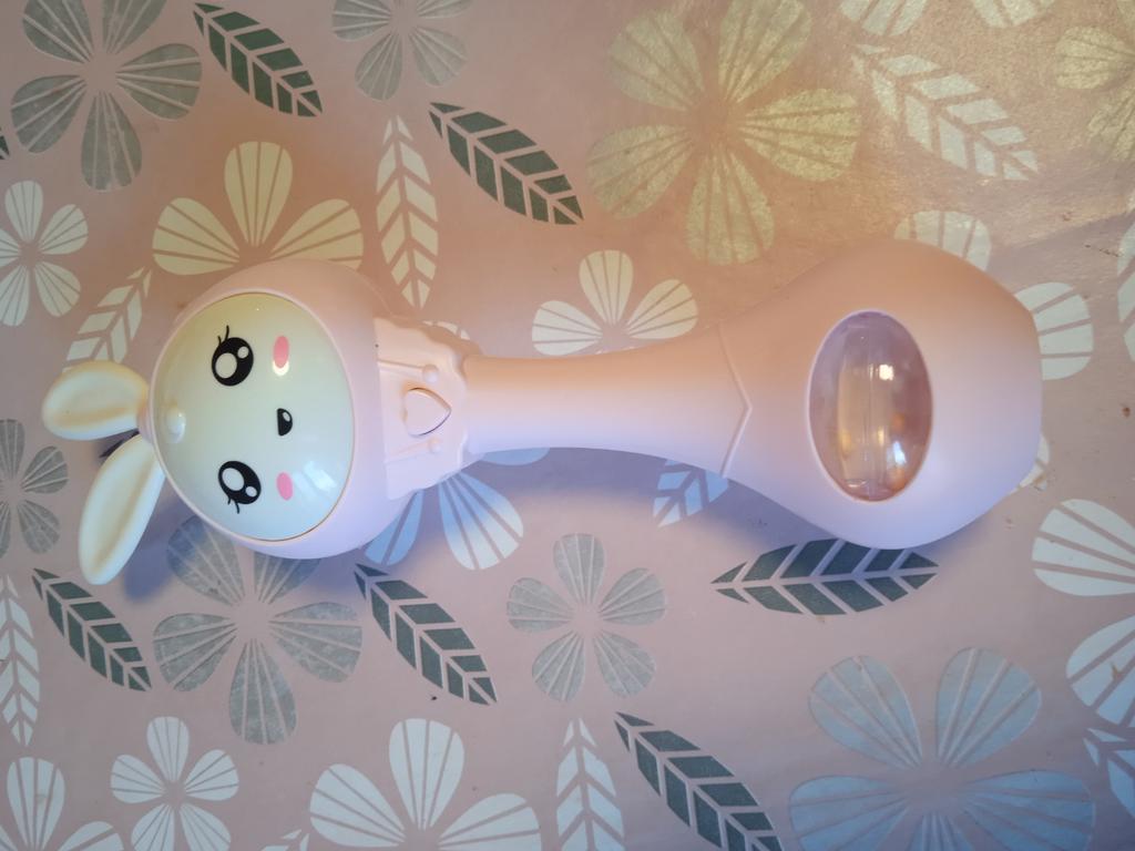 I received a toy, when it sings and the child pulls it with its handle in different directions, the music stops and the honey mushroom sings (freezes) and the ears are very hard for a child to chew on.. so in general the toy is good for a child to hold..