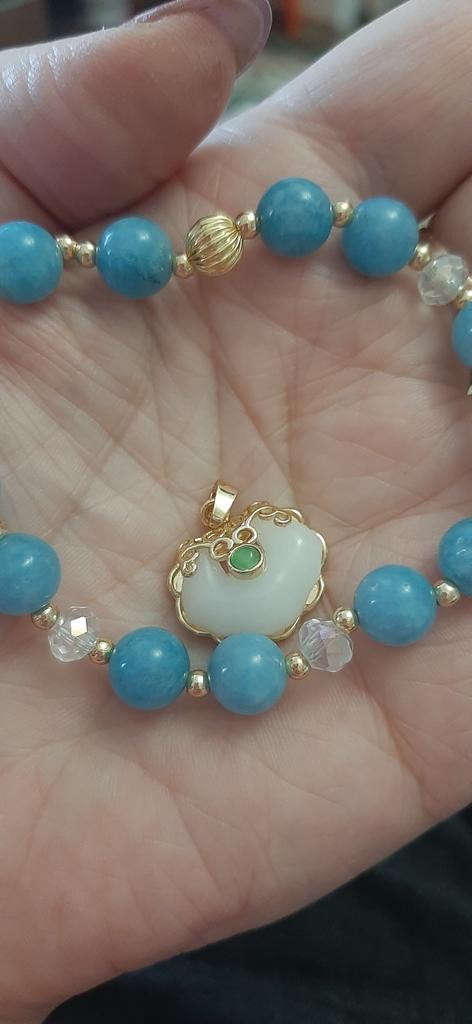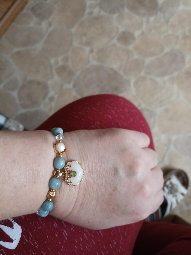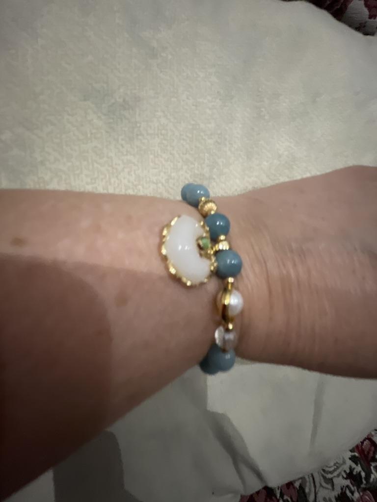 Nice bracelet, just size 19. It's on an elastic band. Pebbles are cold, natural. I've wanted aquamarine for a long time. Thank you.
