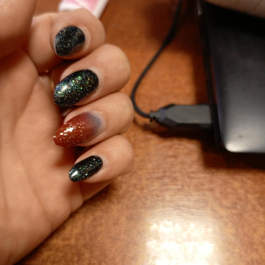 The glue is super, the nails held for almost two Sundays. But during this time, the pattern was erased on the nails