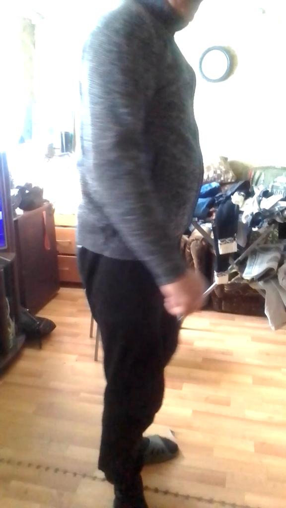 I specifically took a size larger. The sleeves are fine. A little small in the stomach. But it’s my fault: clothes for a slimmer person.