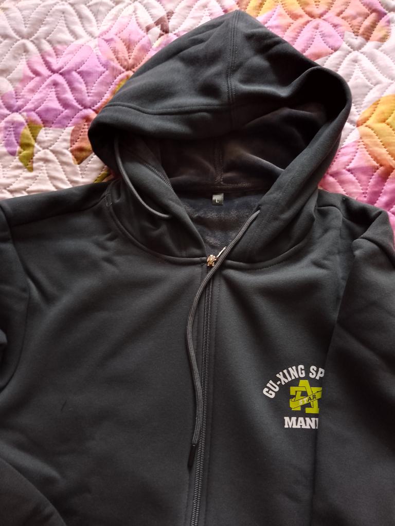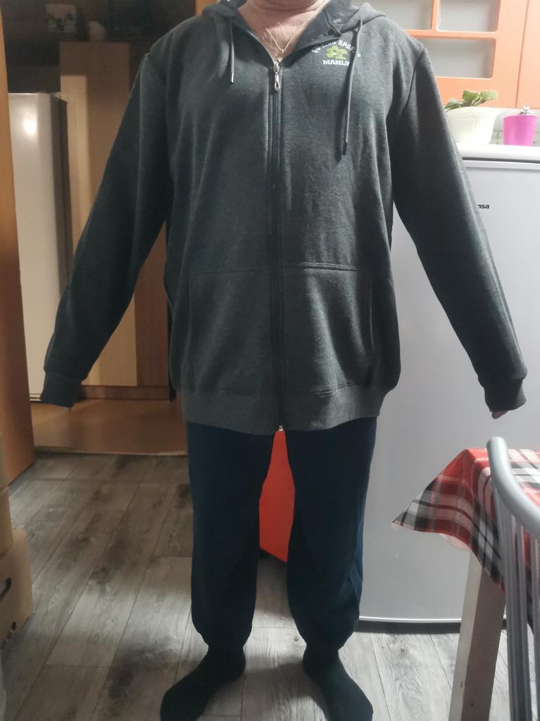 Long delivery delay, several weeks. Size small. I ordered a sweatshirt, size L, for a 183 cm slim man. Unfortunately, it turned out that the ordered L was a small European M. The outside material is like a tracksuit, the inside is lined with velvet and is pleasant to the touch. Unfortunately I have to send it back.