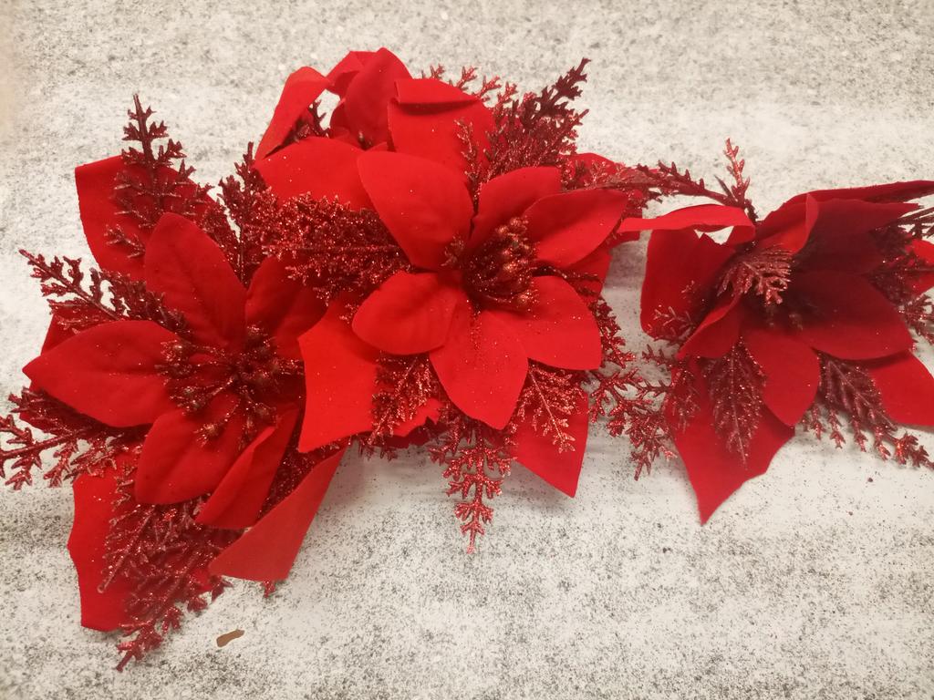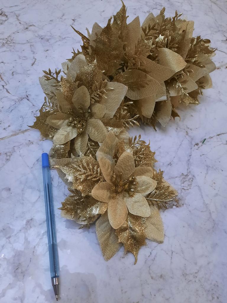 10PCS Festival Christmas Flowers Large Poinsettia Glitter Flower Christmas Tree Ornaments Hanging Party Xmas Decoration
