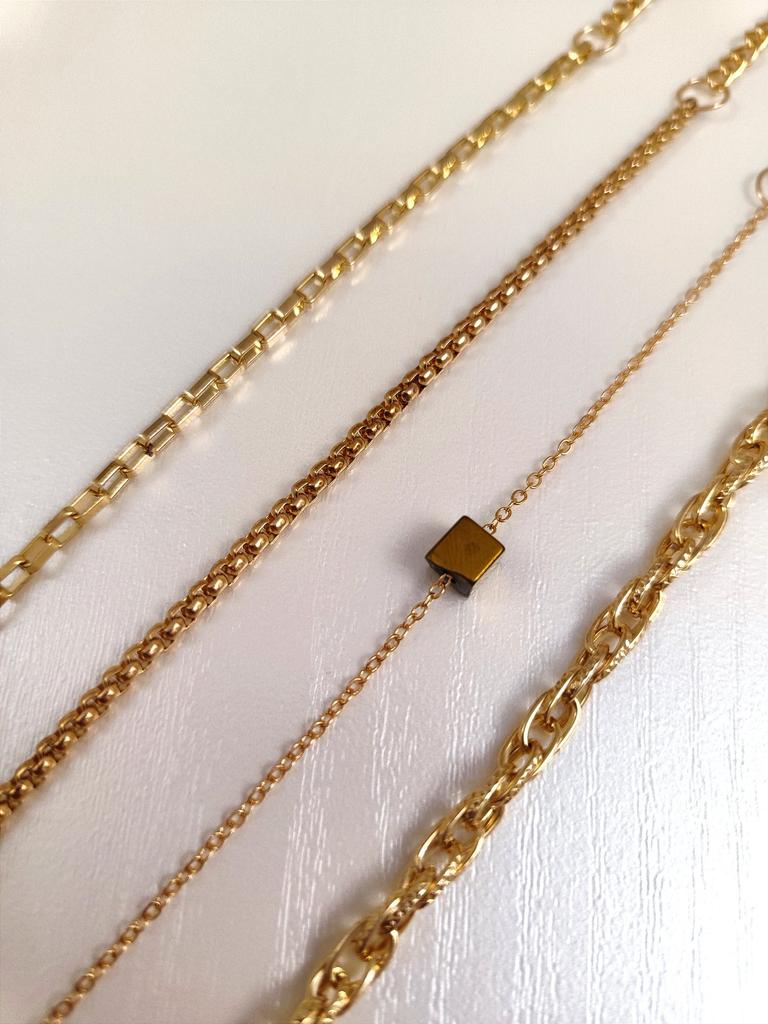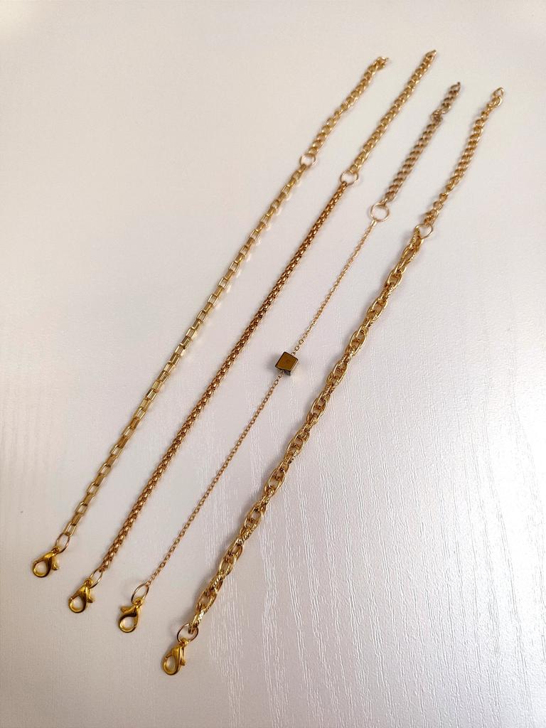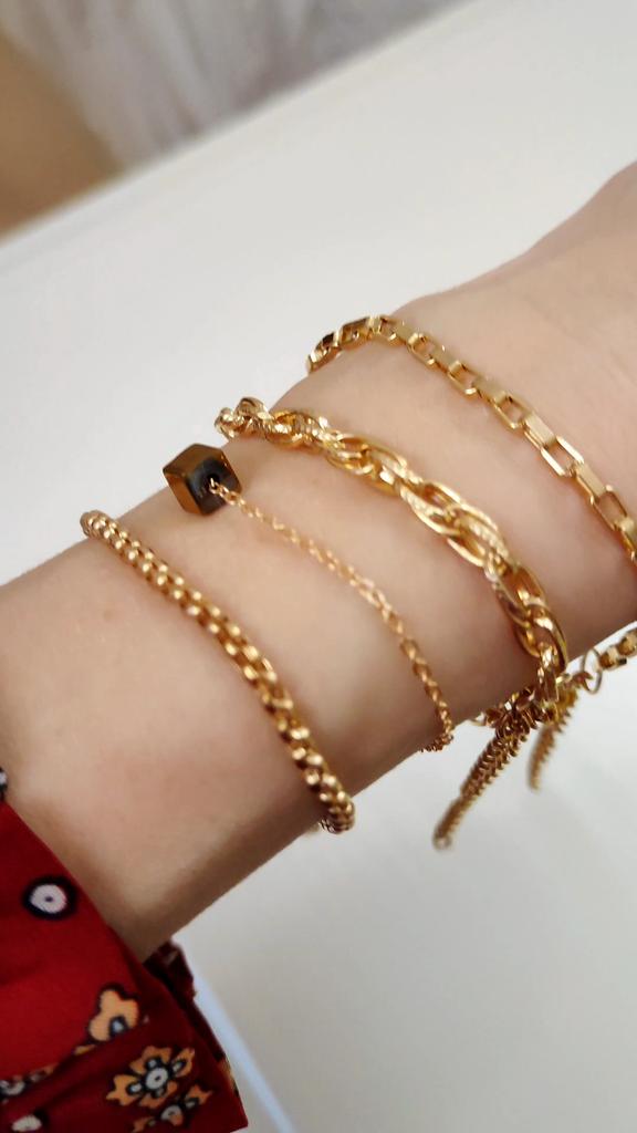 * Bracelets 4 pieces 🌺💗 . The arrival time in Spain was 17 days (it's great) well wrapped. . The seller sent a postcard and a pendant 😍 . The bracelets come in a box.. . Each one has its opening and its closure to put them on individually. The chains are gold plated, they weigh nothing and you can adjust it according to the size of your wrist. . 🌺 HAPPY SHOPPING 🛍️🛒🌺